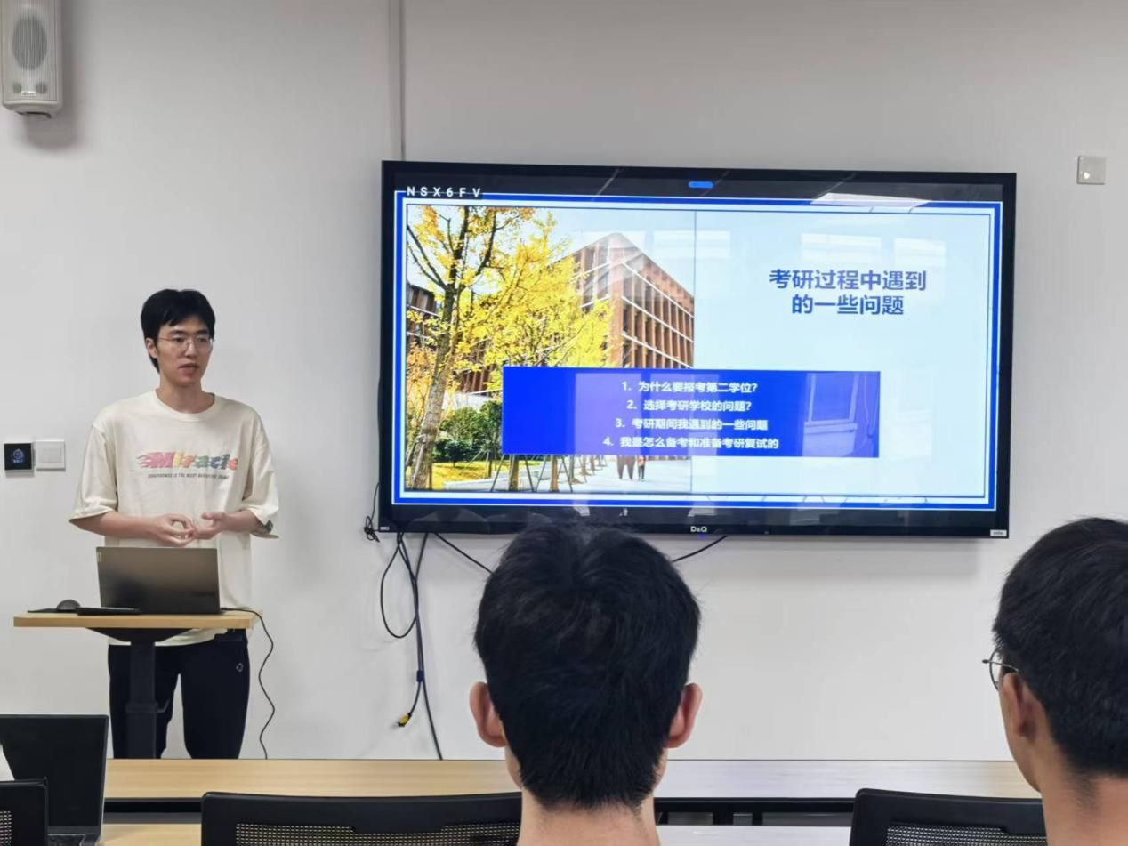 418教室成功举办。此次分享会特别邀请到两位已经成功上岸的同学,分别是来自第二学位工商管理一班的樊娜同学和本科来自材化学院,第二学位为经济学的何锦涛同学。他们将自己备考第二学位与考研上岸的经验倾囊相授,给同学们提供了宝贵的经验。