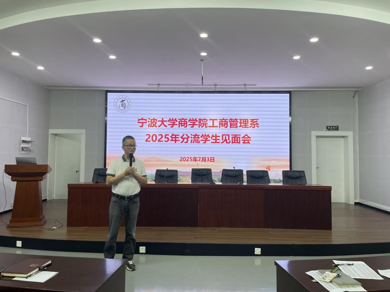 7月3日上午,我院工商系24级分流新生见面会在曹光彪楼501报告厅顺利举办。新生班主任、学工办带班辅导员、24级工商管理专业全体新生参加。会议由工商管理系教师朱福建主持,由学术副院长、工商管理系主任曾守桢、教学系主任陈士慧、工商管理系教师程振东等进行专业介绍。