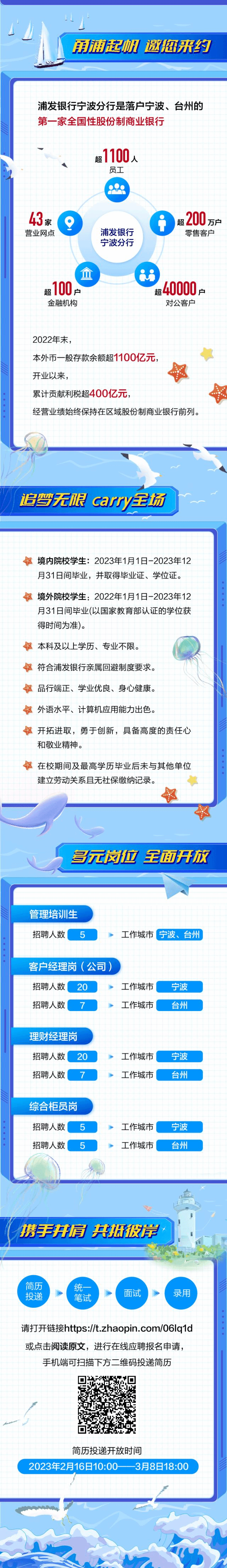 “甬浦起帆 邀您来约”浦发银行宁波分行招聘简章