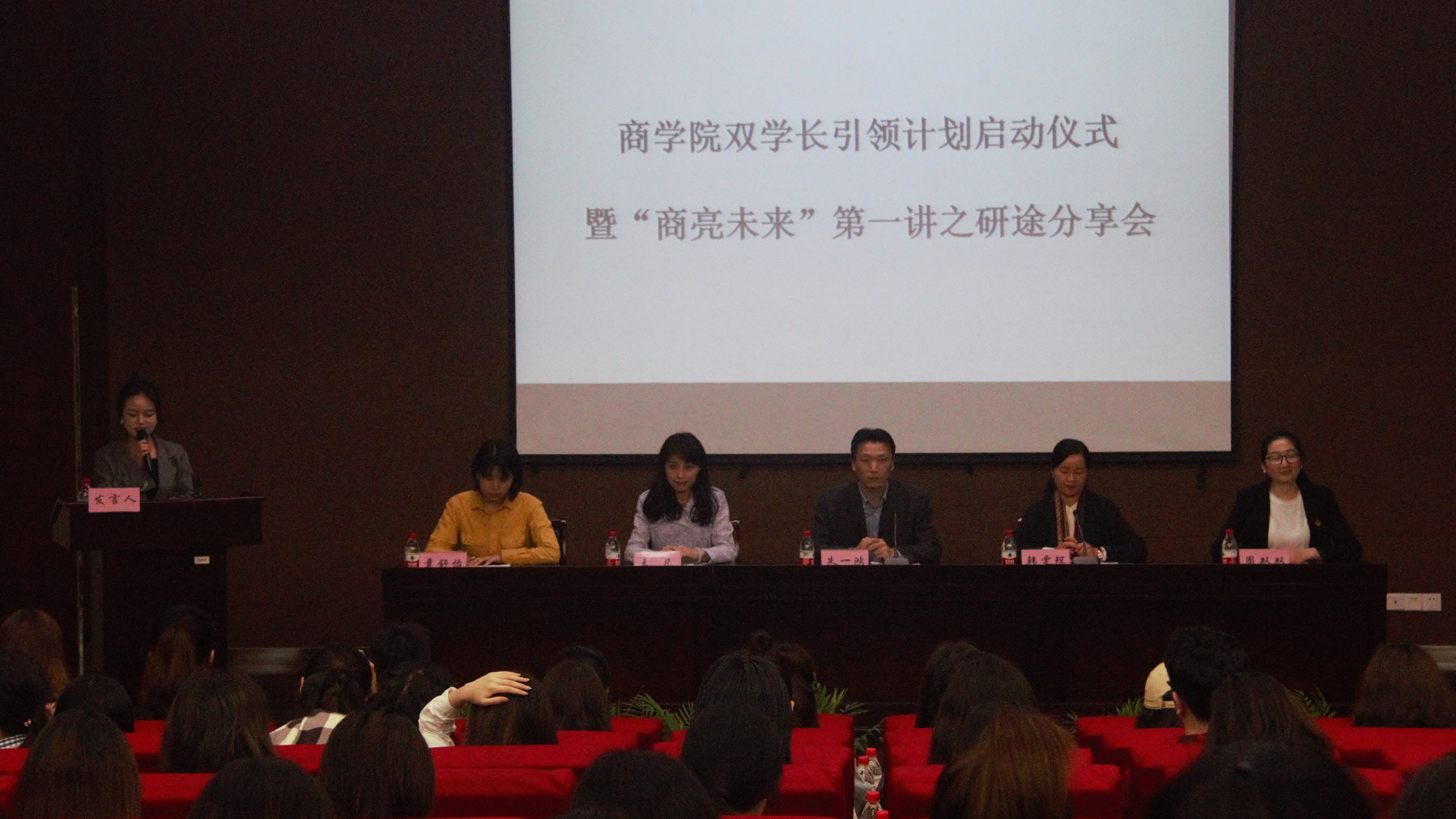 4月26日下午,我院双学长引领计划启动仪式暨“商亮未来”第一讲之研途分享会在高研院报告厅顺利举行。我院党委副书记韩雯琛、协理副院长朱一鸿、负责考研工作辅导员王凡、分团委副书记周双双、研究生辅导员章舒怡出席了本次活动,同时参加本次活动的还有100余名考研同学和40余名研究生学导。