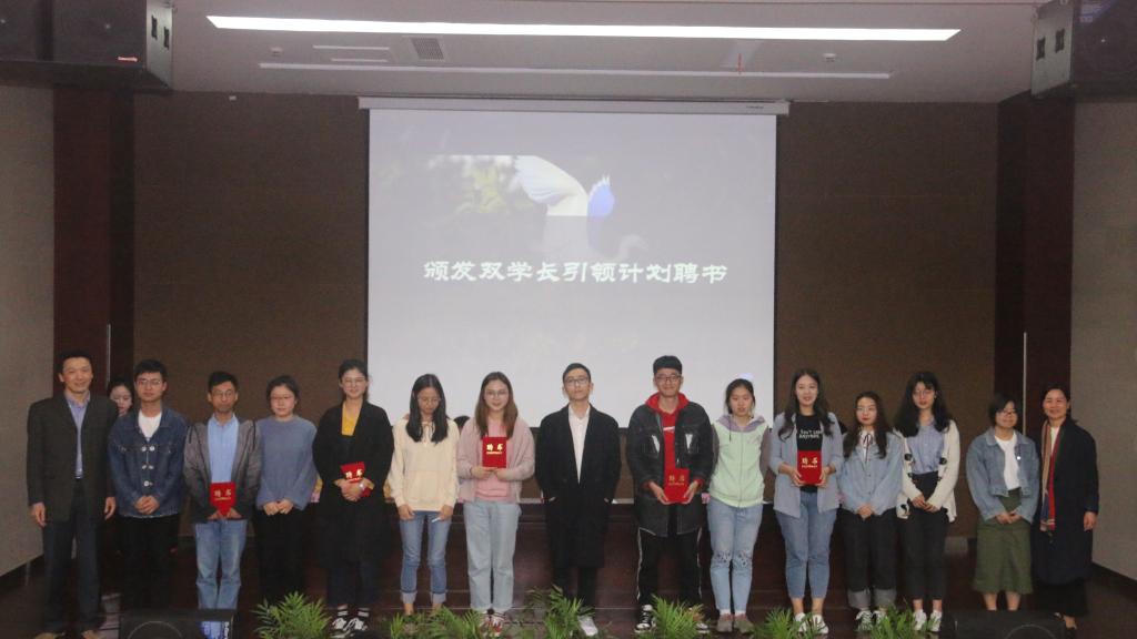 本次活动分为两个部分,第一部分是学院“双学长引领”计划启动仪式,为准备考研学生配备一名校内研究生学导和一名校外就读知名高校校友学导。其中校内研究生学导由研究生党员、预备党员和积极分子组成,以一位研究生带两位本科生的形式进行结对,本次活动共结对47组,学院领导为其中10研究生学导代表颁发聘书,研究生学导代表18国际商务贾馨茹和本科生考研学生代表16全英国贸高银婷进行了发言。第二部分是7名考上暨南大学、同济大学、宁波大学的学长学姐为备考同学分享考研心得和经验,传道解惑。