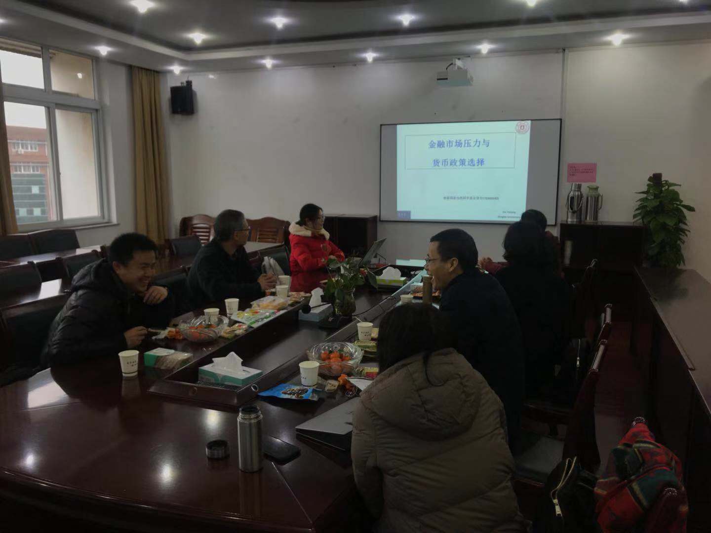 2019年1月4日下午,电竞博彩 学术沙龙(2019年第1期)在11号楼412会议室举行。本期学术沙龙主讲人是我院金融发展研究所的胡育蓉博士,沙龙主题为“金融市场压力与货币政策选择”。沙龙由金融发展研究所所长张琴教授主持,金融发展研究所和数量经济研究所的老师们参加此次学术活动。