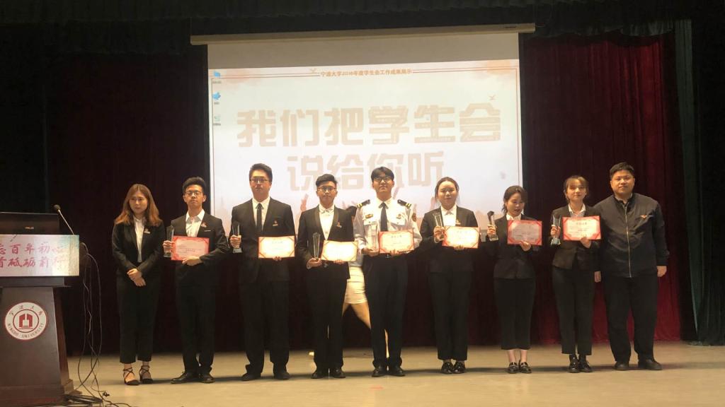 4月27日,由校团委、校学生会举办的2018年度宁波大学优秀学生分会评比展示会在锦绣小剧场举行。我院第十九届学生联合会荣获“宁波大学2018年度优秀学生分会”称号。