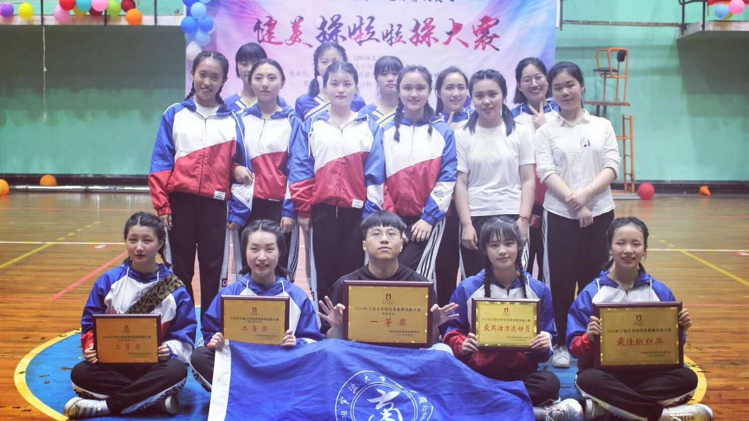 5月19日晚,2019年宁波大学阳光体育之健美操啦啦操比赛在室内篮球馆举办。电竞博彩 健美操队凭借饱满的热情和扎实的基础获得“花球规定套路二等奖”、“自编有氧套路二等奖”、“团体总分一等奖”以及“最佳组织奖”四个奖项。其中黄茜同学也以出色的表现荣获“最有活力运动员奖”。