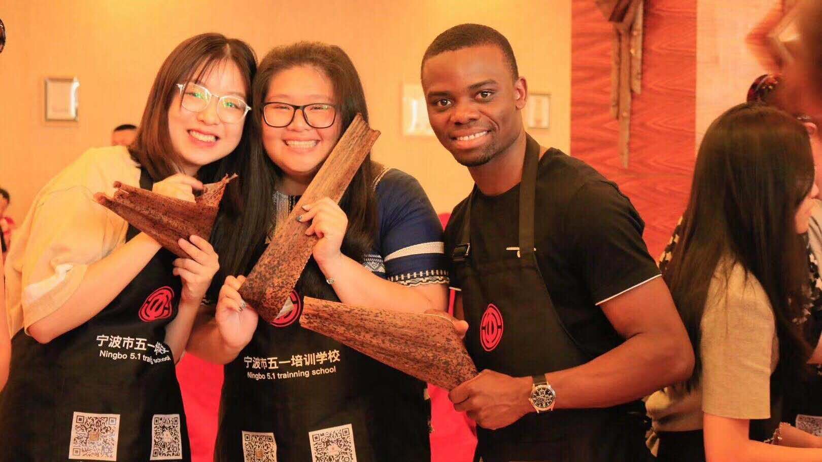 活动伊始,中外学子共同讲述了端午节的来历和风俗,留学生们认真的向中国学子请教“端午节”“粽子”“香囊”的读音,并在那一遍遍练习,场景十分喜庆。接着,同学们根据个人喜好分为两组,一组学包粽子,一组跟老师学做香囊,他们第一次看到包粽子的过程,并动手体验,十分新奇欣喜。学做香囊的同学对中草药十分感兴趣,一直问这是什么,他们感到太神奇了!留学生会同学还带来了精彩中文歌舞表演,Yonad和Nicholas深情演唱了一曲《茉莉花》表达他们对中国的喜爱,Ubay同学用一段充满激情的民族舞蹈把活动推向高潮。活动结束大家口留余香,满载而归,不少同学还准备带回去与室友们分享。“这是我第一次尝到粽子的滋味,真的很香”一位留学生Nicholas不禁竖起大拇指赞美说。中外学子还在一起比比谁做的香囊好看,谁包的粽子结实,来自新疆的同学古力尼格尔说“我真想把我亲手包的粽子带回家给我的妈妈尝尝。”