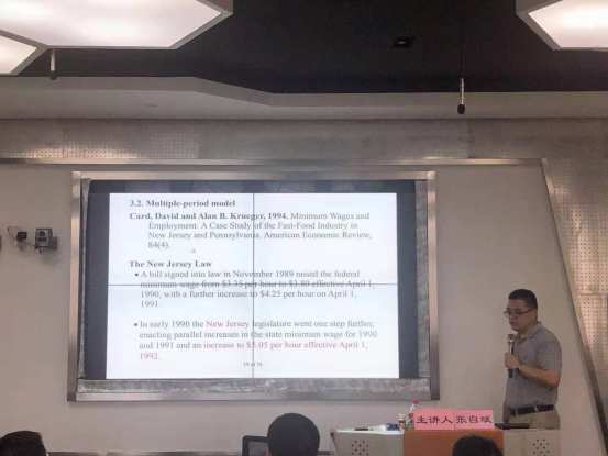 本次研修班共分5个专题进行,由电竞博彩-国内电竞博彩 副院长周新苗教授主持。第一讲为浙江大学经济学院金融学系罗德明教授的“经济与金融的经验研究方法”专题,第二讲为浙江大学经济学院经济系主任朱希伟教授的“新经济地理学前沿与中国的应用”专题,第三讲为浙江大学经济学院叶建亮副教授的“政治经济学前沿与中国的应用”专题,第四讲为浙江大学经济学院副院长潘士远教授的“中国经济问题与经济学模型构建”专题,第五讲为浙江大学经济学院经济学系副主任张自斌副教授的“政策评估模型在资源环境经济学领域的应用”专题。