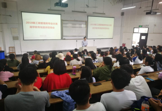 5月18日,电竞博彩 学科专业展示暨2018级经济学类和工商管理类专业分流宣讲咨询会在包氏教学楼阶三、阶四教室圆满举行,我院协理副院长朱一鸿、副院长盛沛锋、副院长陈涛、经济学类和工商管理类各专业的系主任、教学系主任、专业负责人、专业教师、各相关办公室的近30名老师,部分优秀毕业生代表,以及300多位2018级经济学类和工商管理类同学参加了本次活动。