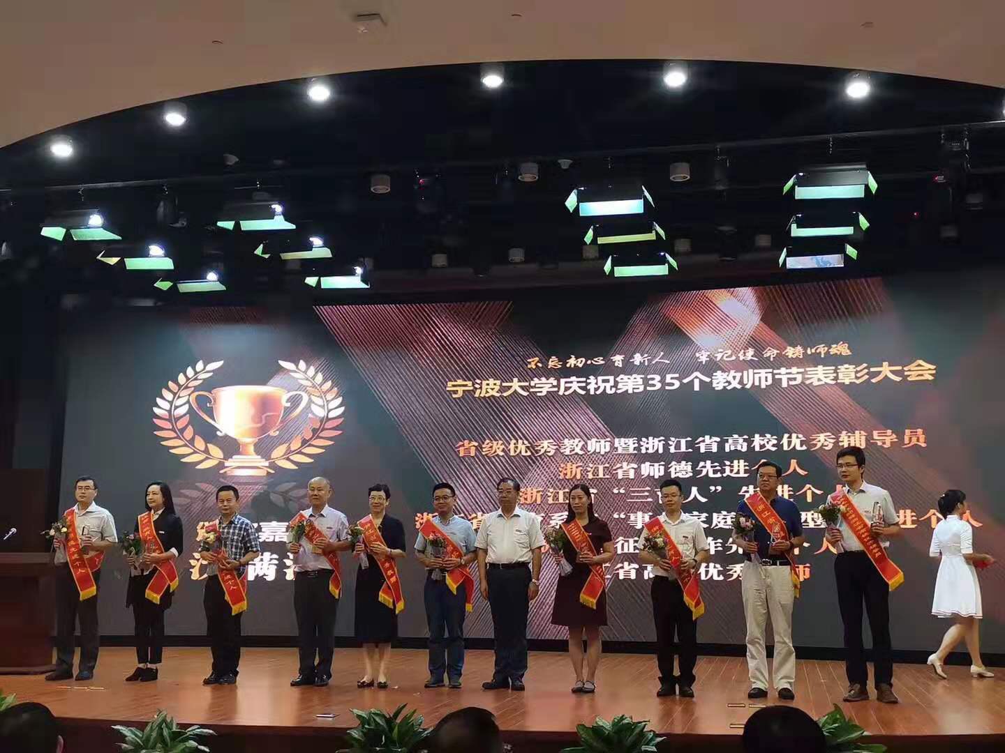 9月10日,宁波大学在真诚图书馆报告厅隆重庆祝第35个教师节,全体学校领导和各学院师生代表参加表彰会,表彰会由宁波大学校长沈满洪主持。