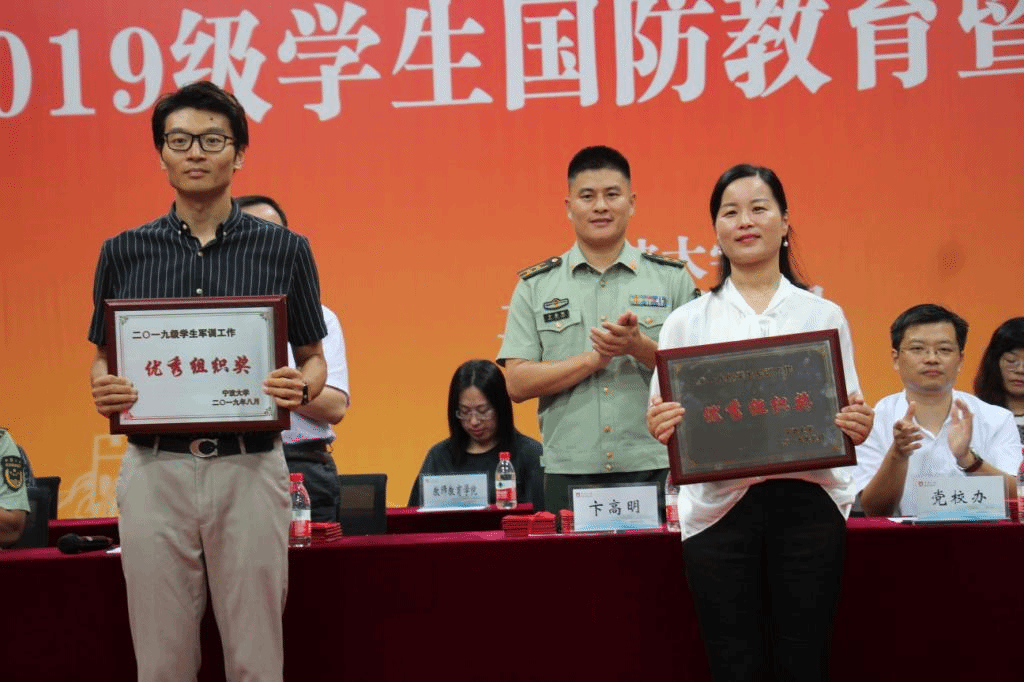 在本次闭幕式上,我院荣获了2019级学生军训优秀组织奖,成为本部仅有的两支获奖队伍之一。校党委副书记冯志敏同志、武警宁波支队参谋长卞高明中校为军训优秀组织的单位颁奖,我院党委副书记韩雯琛作为学院代表上台领奖。荣誉的获得离不开在军训过程中,军事教官对同学们严要求、高标准的训练,也离不开学工办辅导员有序认真的组织管理,给参训学生进行了国防军事理论教育,让我院学子在军训中展现出应有的风采。