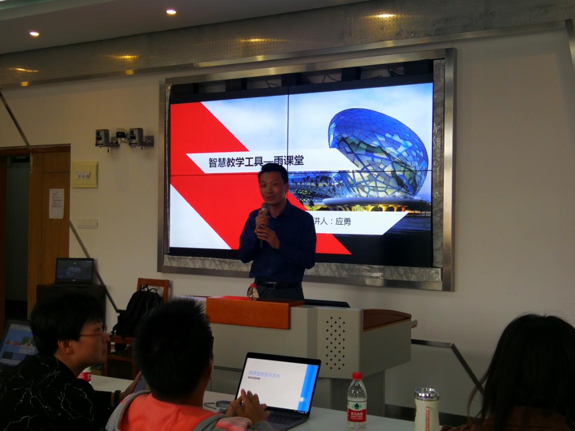 为帮助广大教师利用现代智慧教学工具提升课堂教学效果,积极探索在线课程与传统课堂的结合模式,进行“互联网+课堂”的教学实践,推动我院教学改革的开展,10月16日下午13点30分,学院特邀清华大学学堂在线培训讲师应勇来我院,在11-414为我院教师进行了“雨课堂”智慧教学工具应用专题培训。
