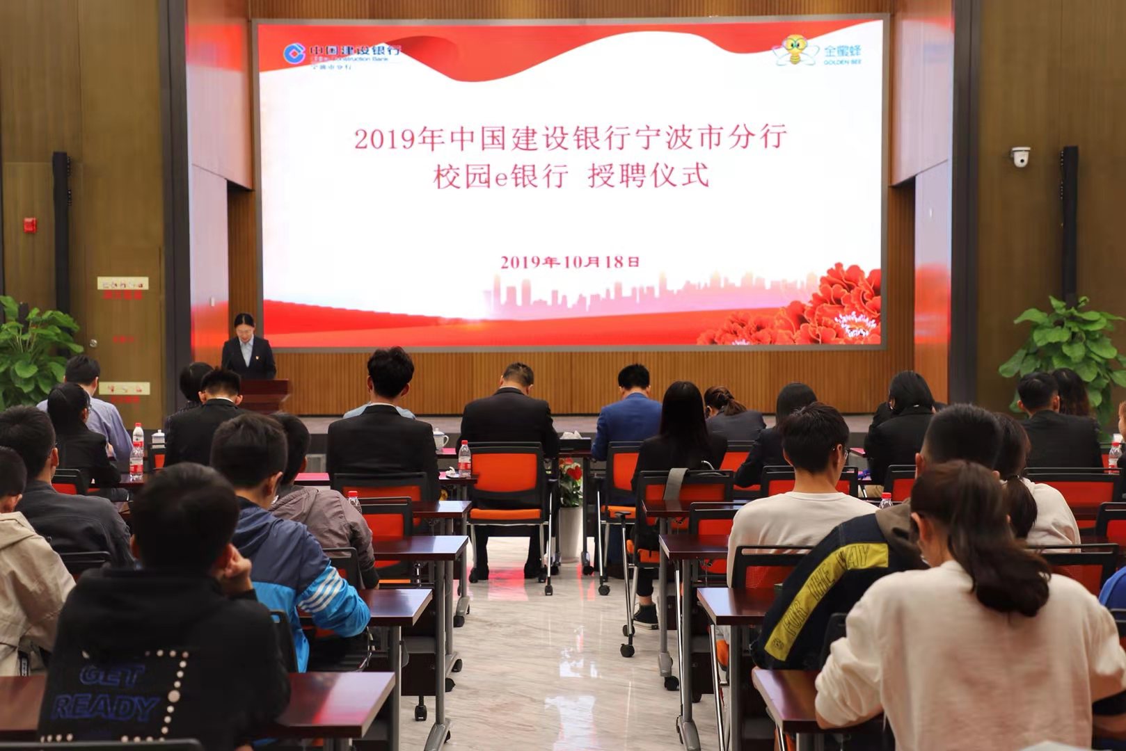 10月18日下午,建设银行宁波市分行校园e银行授聘仪式在中国建设银行宁波分行371多功能厅圆满落幕,本次仪式在上一届成功经验的基础上,沿用了授聘仪式与金融宣讲相结合的形式。中国建设银行宁波市分行韩国辉副行长,电竞博彩-国内电竞博彩 党委书记史宏协、协理副院长朱一鸿、团委副书记章舒怡,浙江万里学院党委副书记王伟忠、学工部部长林德操、团委副书记吴章健等领导和嘉宾出席本次授聘仪式。