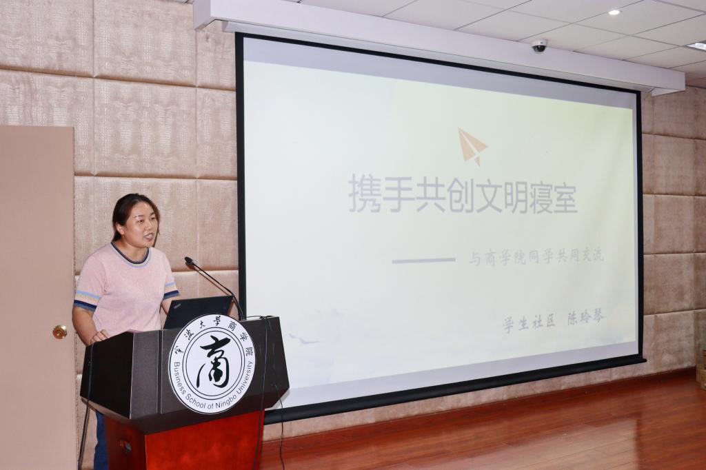 10月11日晚,我院“讲文明树新风,创建缤纷商苑”文明寝室建设颁奖仪式暨主题讲座在109报告厅顺利举办,学生社区服务中心副主任陈玲琴、本部公寓片区负责人毛罕君、学院党委副书记韩雯琛、学工办主任陈彬、学工办金融工商团队负责人周双双、学工办会计信管团队辅导员毛跃祖受邀出席了此次活动,学院每个班级的生活委员、部分优秀班级和优秀寝室代表和全体学生社区自治会学生干部共计100余人参加了本次活动。