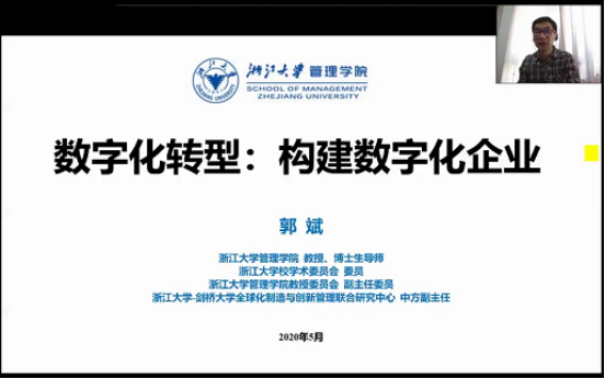 5月24日上午9:00,由电竞博彩 MBA教育中心主办 “宁波大学名人、名嘴、名企”暨第三十四期MBA论坛成功举行。本次论坛很荣幸地邀请到了浙江大学管理学院郭斌教授作为主讲嘉宾,分享主题是《数字化转型:构建数字化企业》。由于疫情原因,本次论坛采有钉钉群直播方式,2019级MBA学员、历届MBA校友及部分师生共150余人参与此次论坛。
