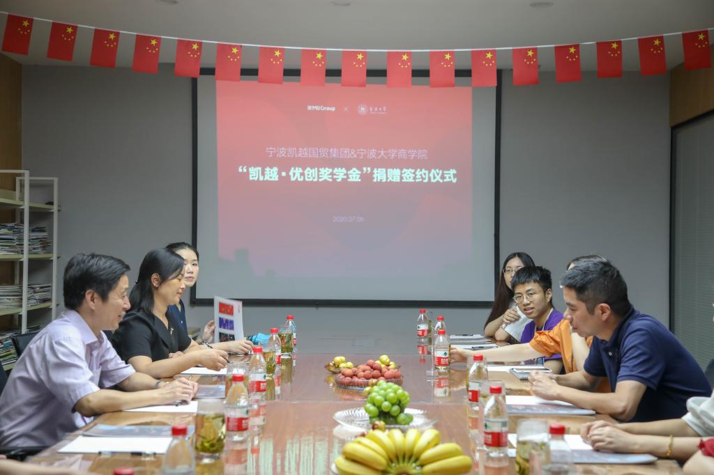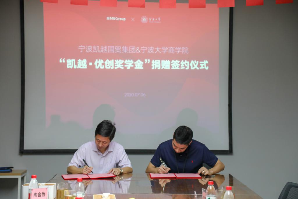 据悉,宁波凯越国际贸易有限公司创立于2004年,在宁波、义乌和上海设立运营中心,并在广州、汕头设有办公室,经营业务主要是为西方零售商在中国的硬产品采购业务服务。为支持母校教育事业的发展,宁波凯越国际贸易有限公司共捐赠30万元,用于设立“凯越·优创奖学金”。