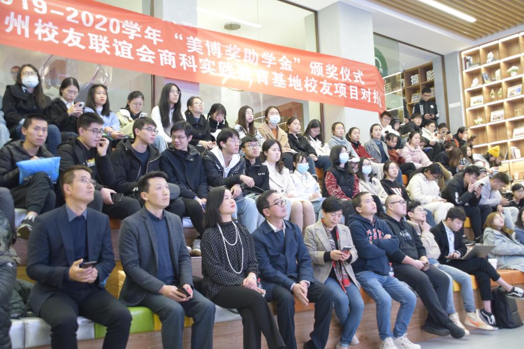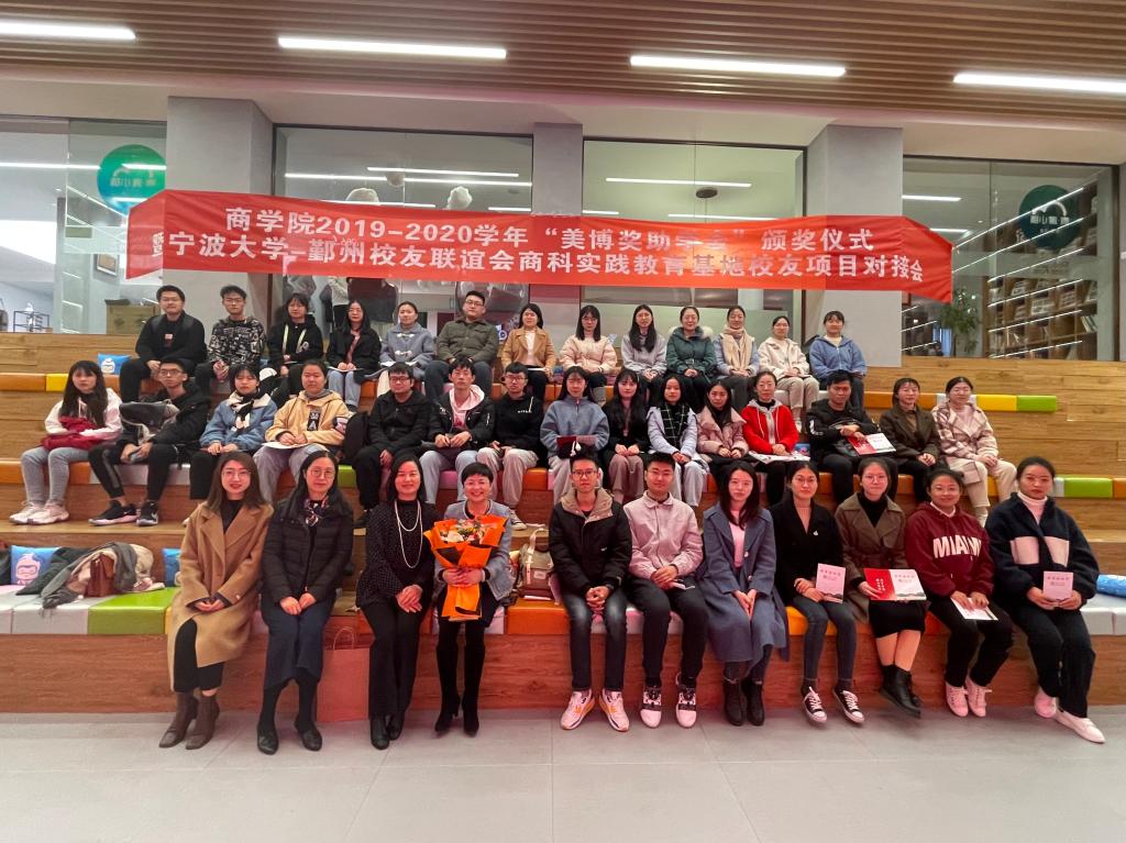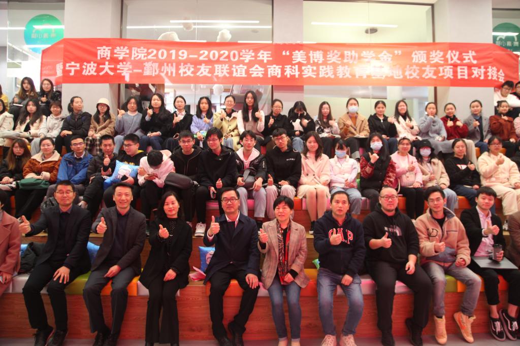 2020年12月9日下午,我院在云创1986青年小镇路演大厅顺利举行2019-2020学年“美博奖助学金”颁奖仪式暨宁波大学-鄞州校友联谊会商科实践教育基地校友项目对接会。本次大会由学院学生董振宇主持。