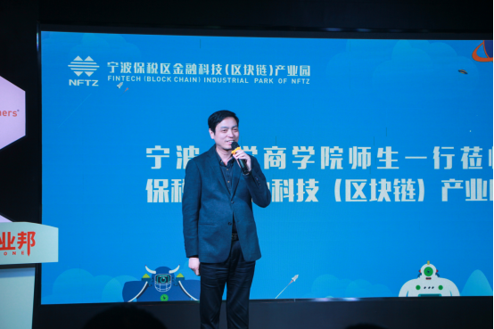 接下来,应局为宁大电竞博彩 的师生们介绍了金融科技(区块链)产业园,保税区管委会自2017底开始筹建,着力聚焦金融科技和区块链技术的创新应用,携同创业邦共同打造以产业集聚、项目孵化、落地应用为一体的产业生态园,同时与宁波诺丁汉大学合作设立区块链实验室,以及与成都电子科技大学合作搭建保税区数字经济产业园等。通过两年多努力,园区发展势头呈现良好态势,为宁波地区传统产业数字化和互联网化转型提供了有力支撑,并将努力为区域数字经济发展持续贡献力量。现在保税区通过引进金融科技、区块链企业,以新型的科技技术力量赋能本地传统产业,链接本地各方资源,打造金融科技产业生态园区。