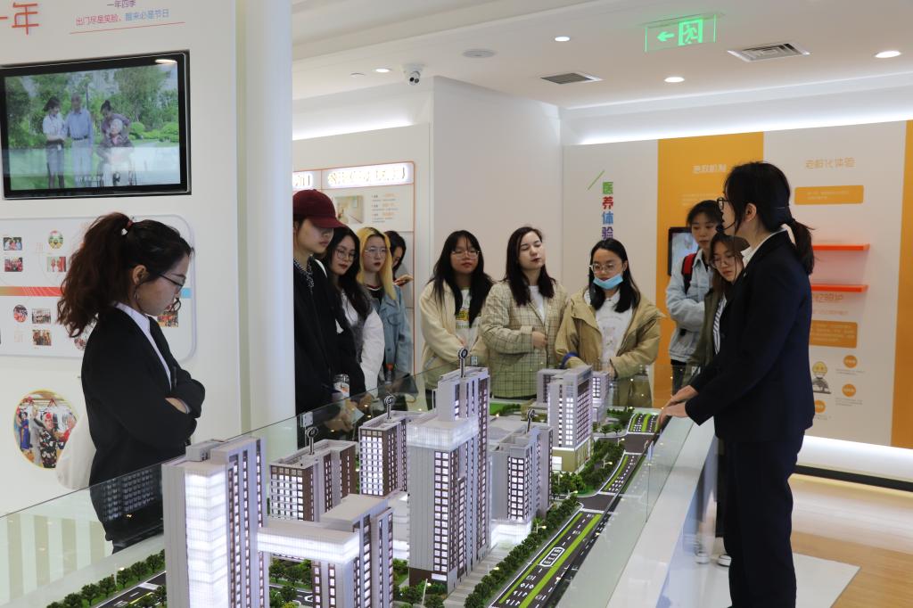 座谈交流结束,人力资源部张亚芬、李佳宜以及客服部陈翠分别带队同学们参观了分公司职场与新生活体验中心。经过对职场的切实参观及对养老社区的深入了解,同学们对泰康社区的养老模式有了一定的见解。