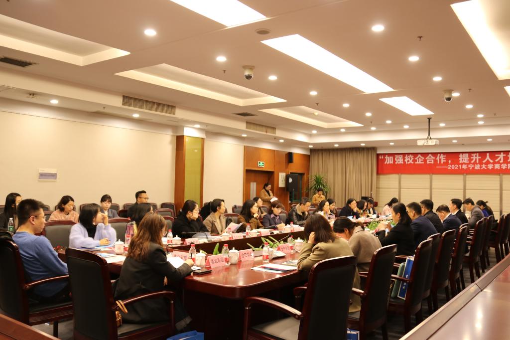 接着,张义廉介绍了宁波大学的就业服务工作。各企业代表围绕就业服务、人才培养质量等内容进行了交流,现场气氛热烈。各代表纷纷介绍企业情况,对我院人才培养表示充分的肯定,同时,对未来进一步加强校企合作、提升人才培养提出了美好的希冀。