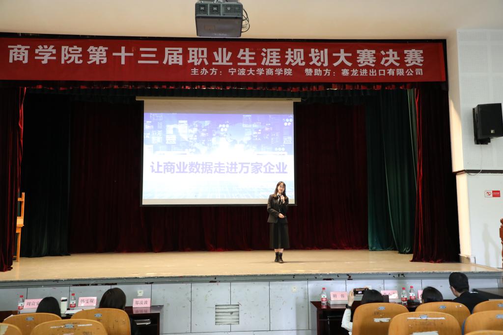 4月30日下午,我院在锦绣小剧场成功举办第十三届职业生涯规划大赛院级决赛。此次比赛邀请了宁波大学学生发展与服务处蔡小飞副处长、学院党委韩雯琛副书记、会计系青年博士张璐,以及7位我院友好企业HR作为评委,进行现场点评。