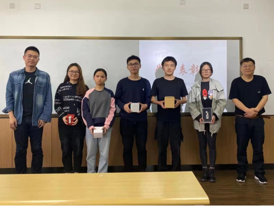 接着,吕鲲老师表扬了班级整体成绩排名前五名的同学,希望他们能在班级中起到领头羊的作用,打造班级良好的向学风气。同时,由熊伟清主任为五名同学分别颁发了具有特殊意义的纪念品。