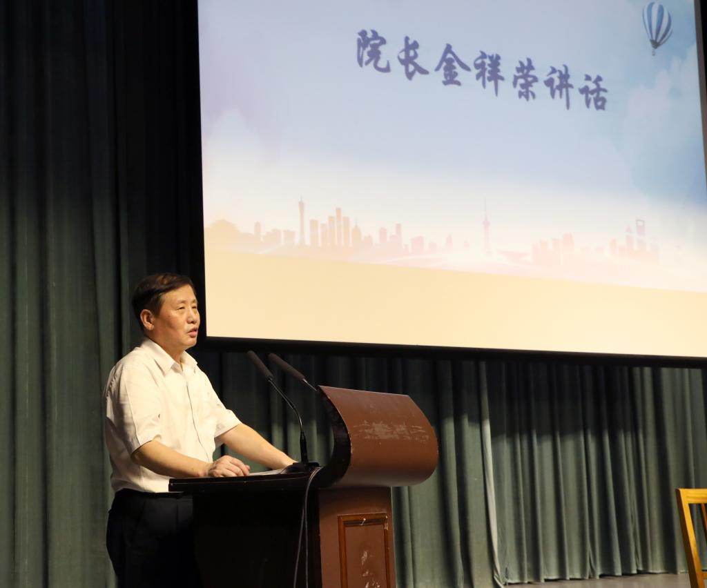 我院院长金祥荣为新生致辞,他首先表示同学们进入电竞博彩 之选择是正确的,而后对于是否要考研的关键选择,金院长从国家创新发展格局转变、市场人才结构需求情况作出了具体而微的综合分析,希望每一位商院学子做好考研的准备,立志做有创新意识、批判精神的商科学子。最后,他希望同学们将做人、做事、做学问相结合,厚德而载物,努力实现个人梦想推动社会的进步与发展。