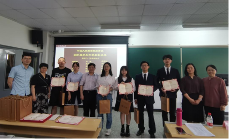 会议第二阶段是2021届学生升学表彰颁奖会。经济系教学系主任黄晖宣读颁奖表彰的名单,金祥荣、韩雯琛和陈彬等向升学的同学们颁奖并合影留念。颁奖会上,韩雯琛向成功升学的同学们表示祝贺,给在场的18级和19级同学们介绍了学院的考研激励政策、近几年考研情况的变化,并希望同学们合理确定目标学校,在备考过程中要善于用好院里、系里、身边的资源。