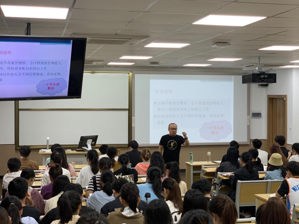 此次公开观摩课的课程名称是《财经法规与职业道德》,该课程是会计学专业核心课。课上,于老师介绍了会计工作的交接,会计专业技术资格与职务以及会计的核算职能。于老师教学方法多样,在教学过程中适当融入思政元素,尤其是将生活中的实际与会计专业知识结合在一起。整个授课过程中,于老师教态大方、语言生动,表述清晰,教学内容娴熟,注重与学生的互动,驾驭课堂能力强,教学效果良好。