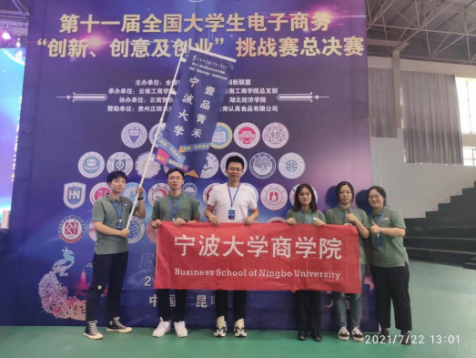 2021年7月20日至22日,第十一届全国大学生电子商务“创新、创意及创业”挑战赛总决赛在云南工电竞博彩 举行。我院的“壹品青禾”团队代表宁波大学参赛。经过三天的激烈角逐,由吕鲲老师指导,胡晓琳、张海澜、熊育棋、王禹婷、周鲁静团队的“壹品青禾---唇齿留芳五常香”项目获得全国一等奖,吕鲲老师获全国大学生电商竞赛优秀指导老师。