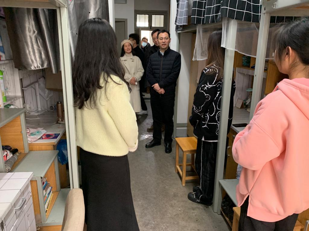 为深入了解学生开学返校情况及生活状态,加强学生寝室安全管理工作,2月18日上午,校党委副书记童晓晖、学生发展与服务处副处长张海华、学院党委副书记韩雯琛、学生社区服务中心主任方芳等老师深入学生寝室与同学们进行了亲切交流。