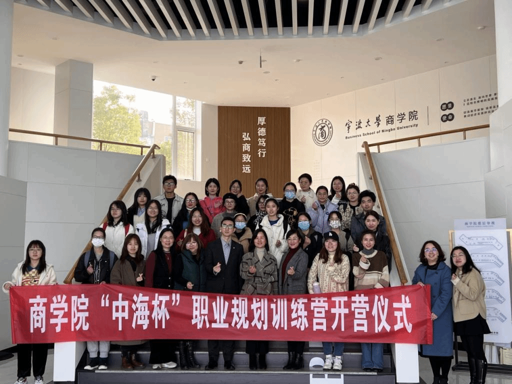 3月2日,我院“中海杯”职业规划训练营开营仪式在曹光彪楼523举行,中海地产宁波公司人力部高级经理王福建、我校就业指导中心主任王洪影、我院党委副书记韩雯琛、训练营学生及指导老师出席此次开营仪式。