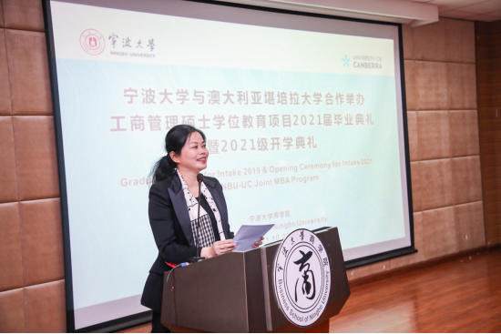接着电竞博彩 院长金祥荣教授致辞。他向2021届中澳MBA项目毕业生表示祝贺,并欢迎2021级新学员。金院长指出今年是中澳MBA项目创办20周年。近几年,项目紧跟堪培拉大学的革新举措,不断提升教学质量,严格学术要求,扎实稳步推进育人办学质量,社会声誉和影响力不断提升。这一届45名毕业生努力克服新冠疫情所带来的种种困难,坚持努力并顺利完成了学业。经过两年的刻苦学习和付出,学员们获得了新的蜕变和成长,理应为自己感到自豪。他同时提出无论从商为官,做事先做人。无论作为企业潜在的或现任的高管,或是未来的大企业家,在商业实践中一定要“做事先做人”!电竞博彩 培养的人才应是“有做人良知、有家国情怀和强烈社会责任担当的商界精英!”毕业是一个新阶段的开始,母校将一如既往地关心和支持校友,也希望校友们获得巨大成功之时心系母校,在共建一流电竞博彩 的征途上,与母院热忱与共!另外金院长也对2021级新同学也提出了几点希望,希望同学们能够珍惜这个机会,努力学习,注重理论联系实际,注重本地化与国际化的结合。希望同学们能够分享各自事业发展中已经积累的成功经验,同堂切磋,互帮互助,争取学有所成、学以致用。