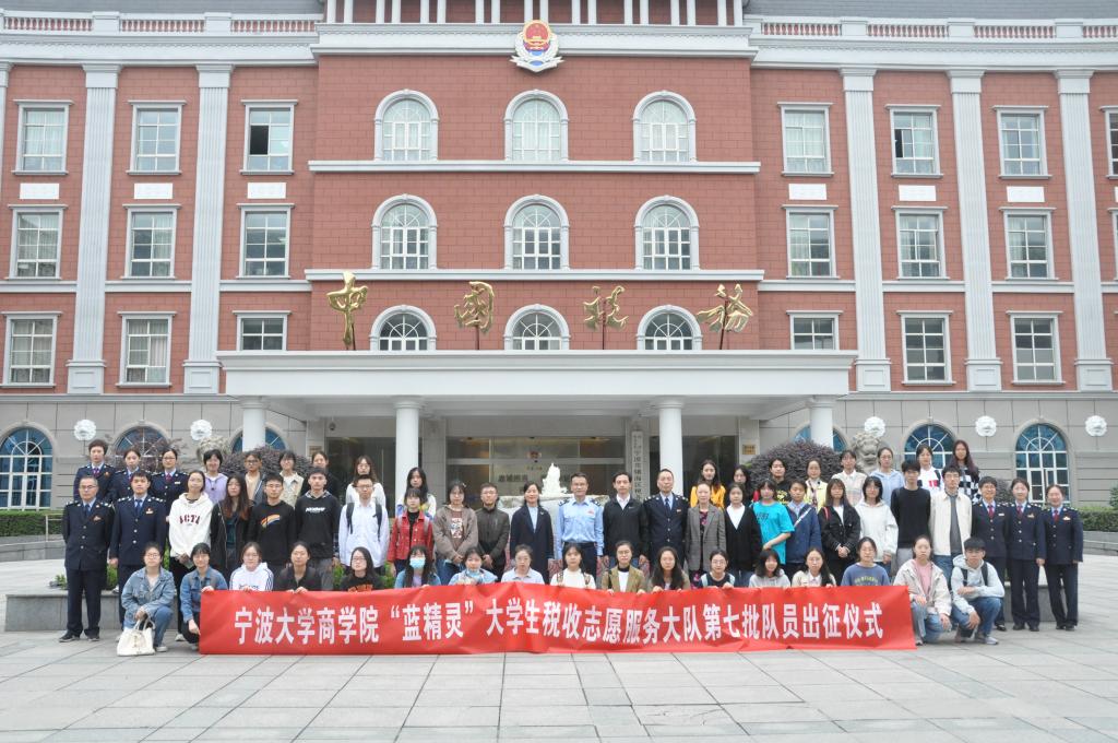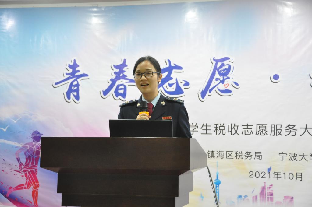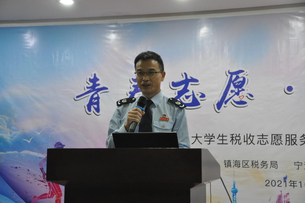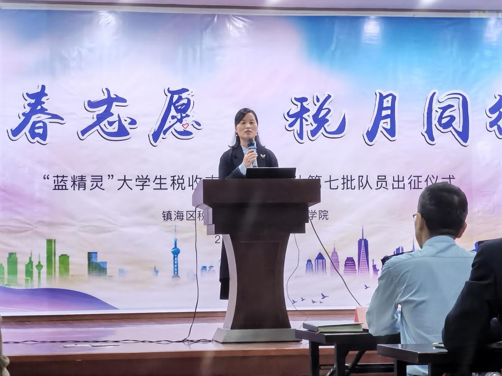 11月3日,我院“蓝精灵”大学生税收志愿服务大队第七批队员出征仪式在国家税务总局宁波市镇海区税务局举行。宁波市税务局纳税服务处副处长董如峰、镇海区税务局副局长屠晓军、镇海区税务局纳税服务科科长方锐和电竞博彩 党委副书记韩雯琛、本科生第六党支部书记董璐受邀出席,镇海区税务局纳税服务科及各税务所业务骨干和“蓝精灵”大学生税收志愿服务大队第七批队员代表50余名同学参与此次活动。