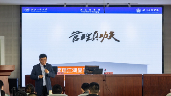 讲座伊始,俞教授结合自身讲学经历,从我国市场特点、信息变迁速度、国内外差异化管理以及相关企业实践等方面向与会同学介绍了我国本土的“管理江湖”现状,指出管理类的学习需要结合实践,适应本土管理情况,不能仅仅拘泥于书本理论。随后,俞教授向同学们介绍了如何在“数智时代”做一名合格的管理类“牛人”。俞教授认为扛得起、合得来、放得下、守得住的“四得”法则是每一个位同学都必须要时刻牢记在心中的管理学第一法则,只有这样才能在今后工作中做到有担当、能共生、品端行正、德才兼备。接着,俞教授指出在“数智时代”下持续创造是每一位同学必备的法则。在管理类的学习过程中,不仅仅要学习理解相应的基础理论知识,更要学会如何去应用知识、挖掘隐藏在理论背后的隐性知识。俞教授告诫同学们,从事管理类工作“三分学、七分琢磨”,只有去深度思考才能够拥有突出创造力从而获得缜密、完备的逻辑思维。最后,俞教授向同学们介绍了从事管理类工作的“最高法则”——永远热爱,只有热爱这份事业,才能够让自己在“管理江湖”中行走自如。