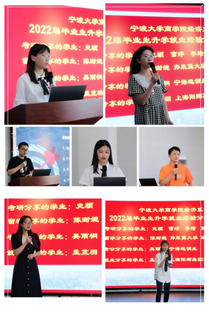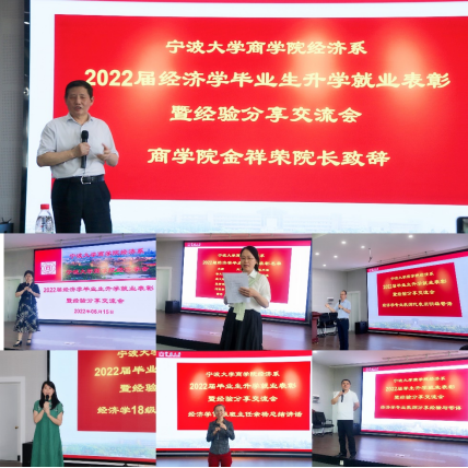 2022年6月15日下午,经济系2022届毕业生升学就业表彰暨经验分享交流会在曹光彪楼501报告厅举行。此次会议由经济系主办,经济系系主任徐群芳教授主持。电竞博彩 院长金祥荣教授受邀参加,2022届经济学班主任余杨教授、辅导员章舒怡、经济系部分教师、经济学专业毕业生和部分在读的19级和20级本科生一同参会交流。
