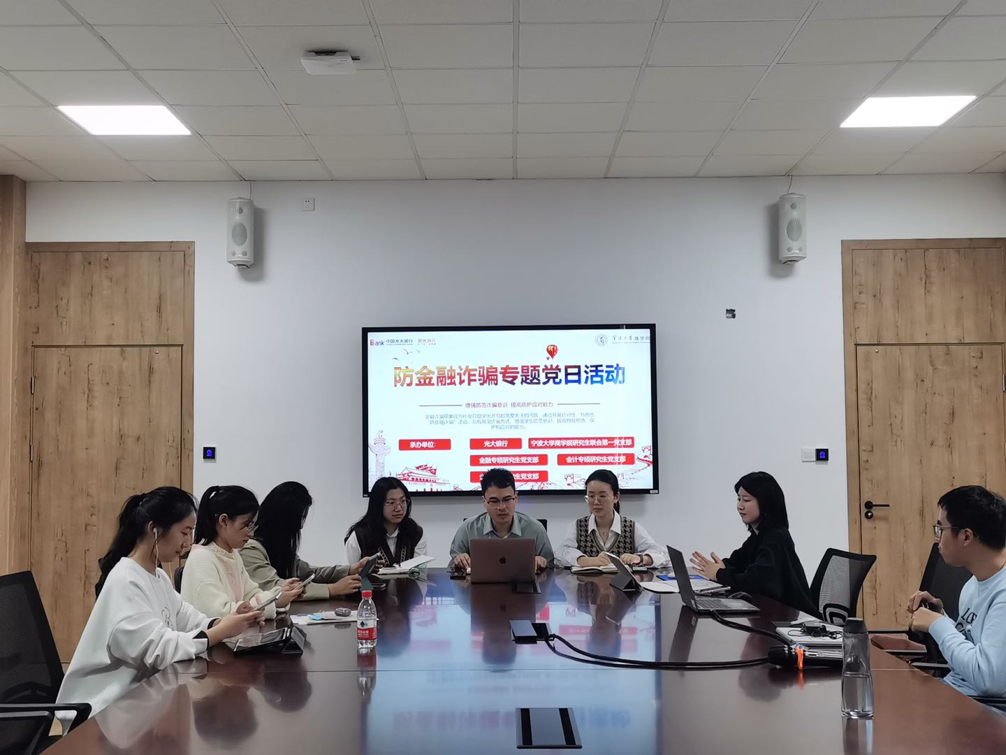 如今,金融诈骗现象已成为社会日益突出并引起高度关注的问题,正值第40个“315国际消费者权益日”之际,为了提高同学们的维权意识,避免落入诈骗陷阱,我院于3月16日下午开展了防金融诈骗专题党日活动。此次活动由电竞博彩 研究生联合第一党支部、金融专硕研究生党支部、会计专硕研究生党支部与企业管理研究生党支部共同举办,光大银行宁波分行渠道管理部负责人孙曙光、光大银行宁波镇海支行零售主管行长邵琦、电竞博彩 学工办主任陈彬受邀出席。