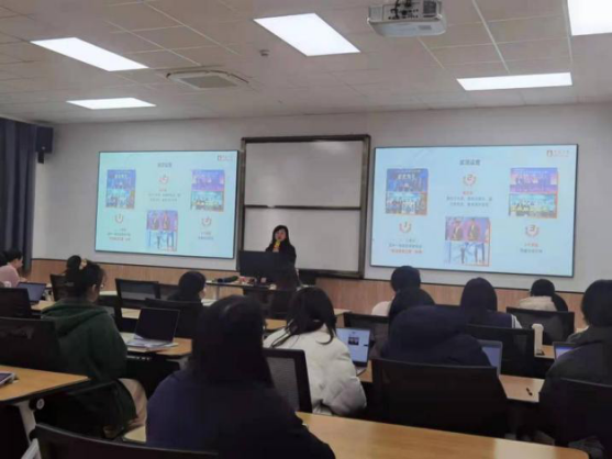 首先,王洪影为同学们介绍了职业规划大赛的基本情况和具体流程,包括参赛目标、大赛历史发展、开展情况等。然后,她结合具体文本写作案例进行要点讲解,指出文本的基本结构中应包含作品名称、感悟、主体、图表、结束语等等,并详细展开对每一部分结构进行讲述。提出一个好的作品是有高度、有维度和有深度的。