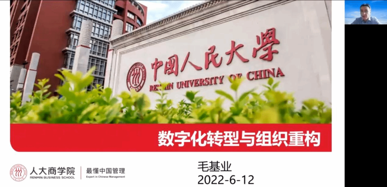 2022年6月12日上午,我校“名人、名师、名家”暨第四十四期MBA论坛于线上成功举行。本次论坛邀请了中国人民大学教授毛基业作为本次论坛演讲嘉宾,主题为《数字化转型与组织重构》。论坛由电竞博彩 彭新敏教授主持。2021级全体MBA学员、历届MBA校友及感兴趣的宁大师生200余人参与了本次论坛。