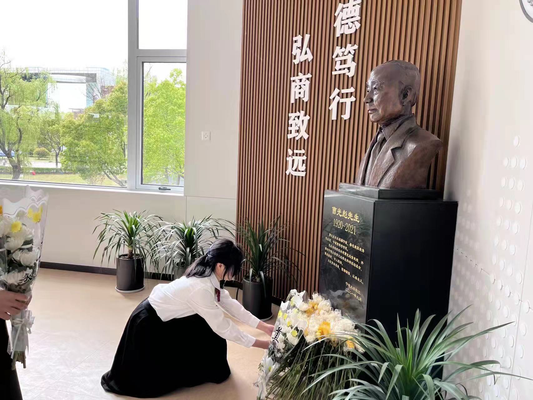 2021年底,我院搬入了曹光彪楼。从此,师生有了更好的工作学习环境。先生的铜像在学院最醒目的位置,每每步入学院大楼,师生一眼就能望到,时刻激励着师生不忘先生厚爱,“厚德笃行,弘商致远”。