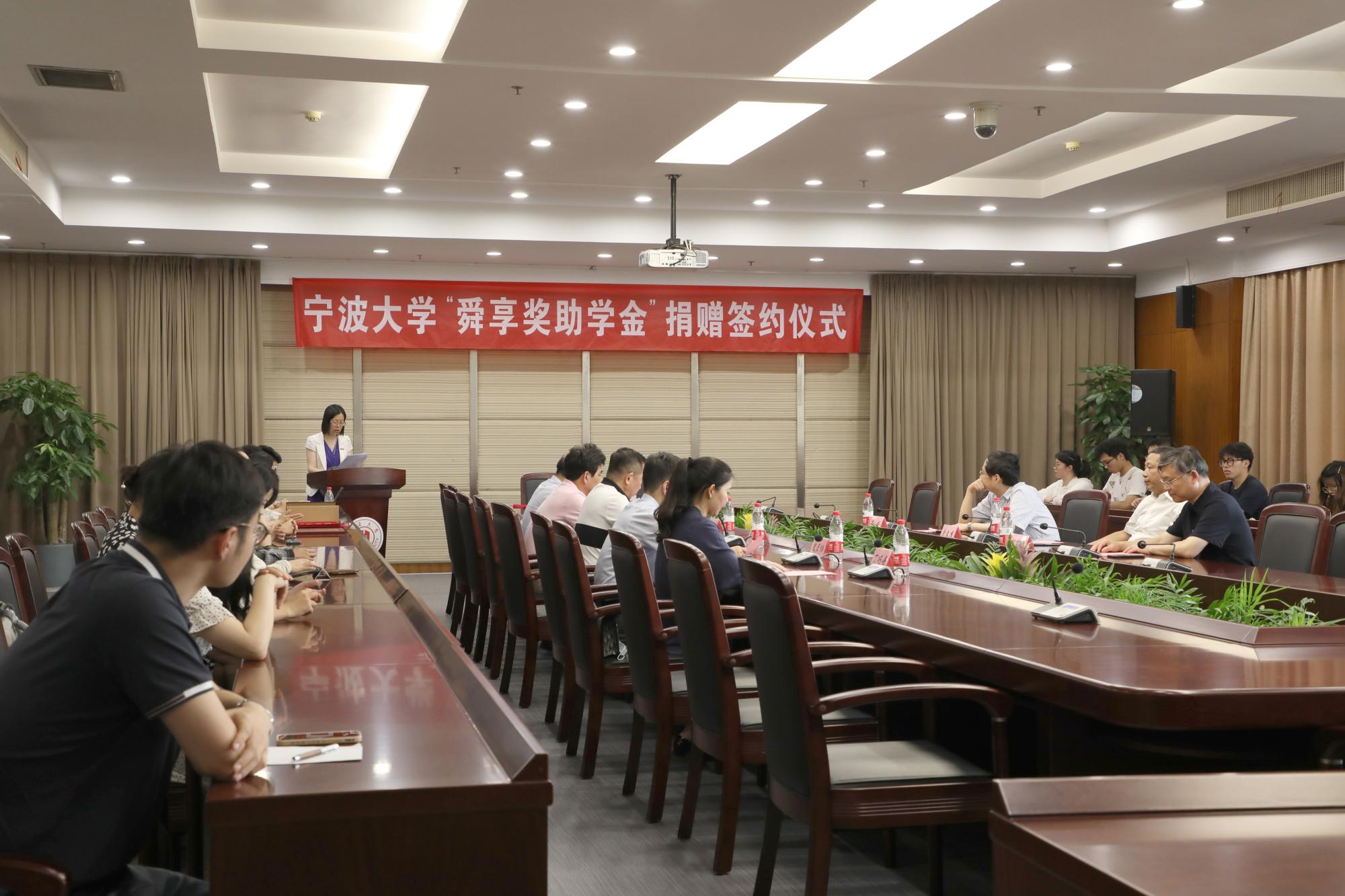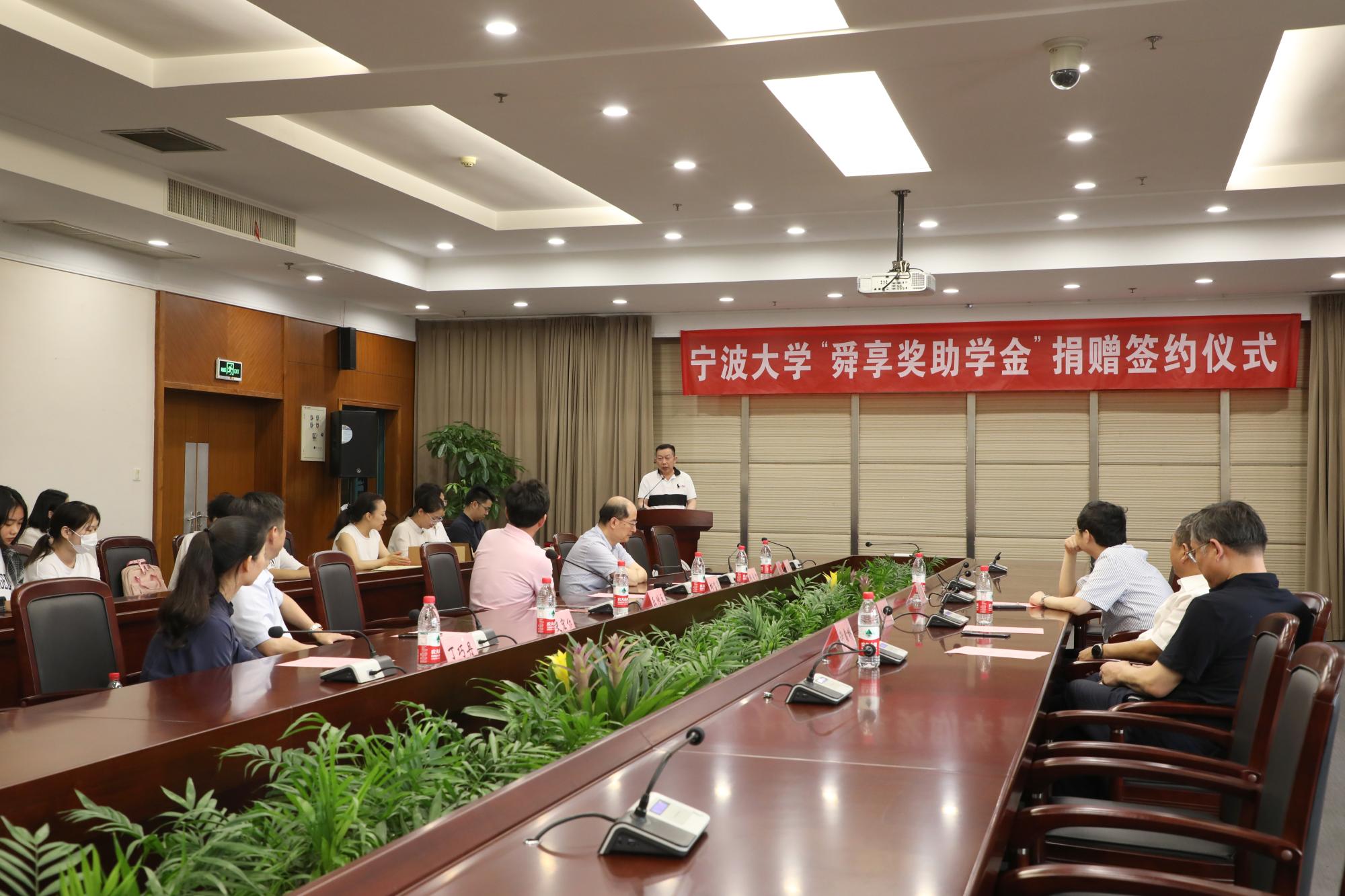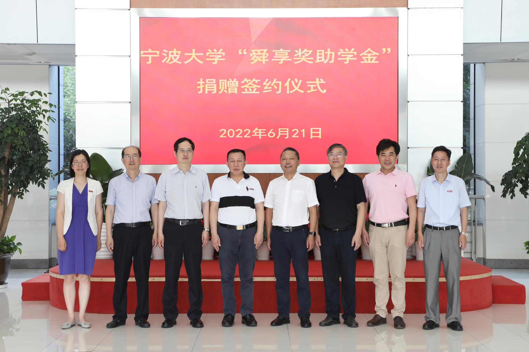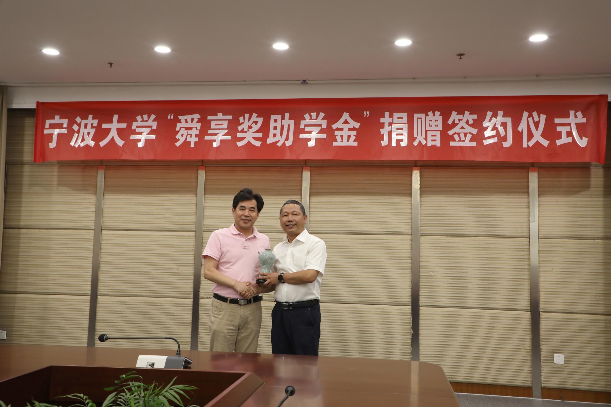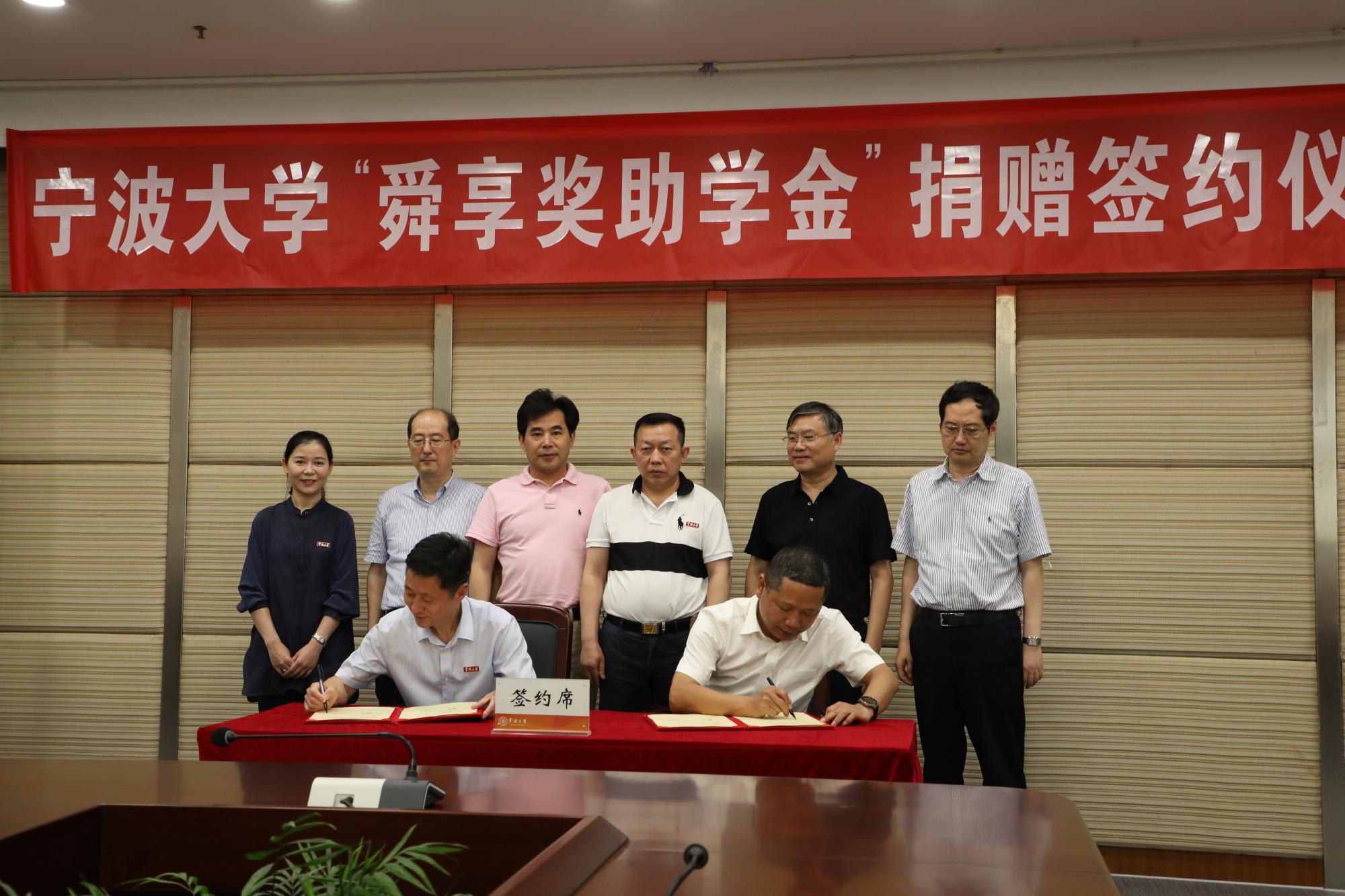 6月21日下午,宁波大学“舜享奖助学金”捐赠签约仪式在安中大楼碧华厅隆重举行。宁波大学“舜享奖助学金”由宁波大学工商管理87级校友、宁波舜享国际货运代理有限公司总经理黄文杰先生发起,捐赠100万元,分别为电竞博彩 、海运学院设立奖学金、助学金,用于鼓励和帮助宁大学子,支持宁大发展。浙江聚祥纳福有限公司总裁谢鑫桥、宁波宝利进出口公司董事长尹波、宁波大学副校长乐传永等出席,仪式由学工部部长、学生处处长胡铭主持。
