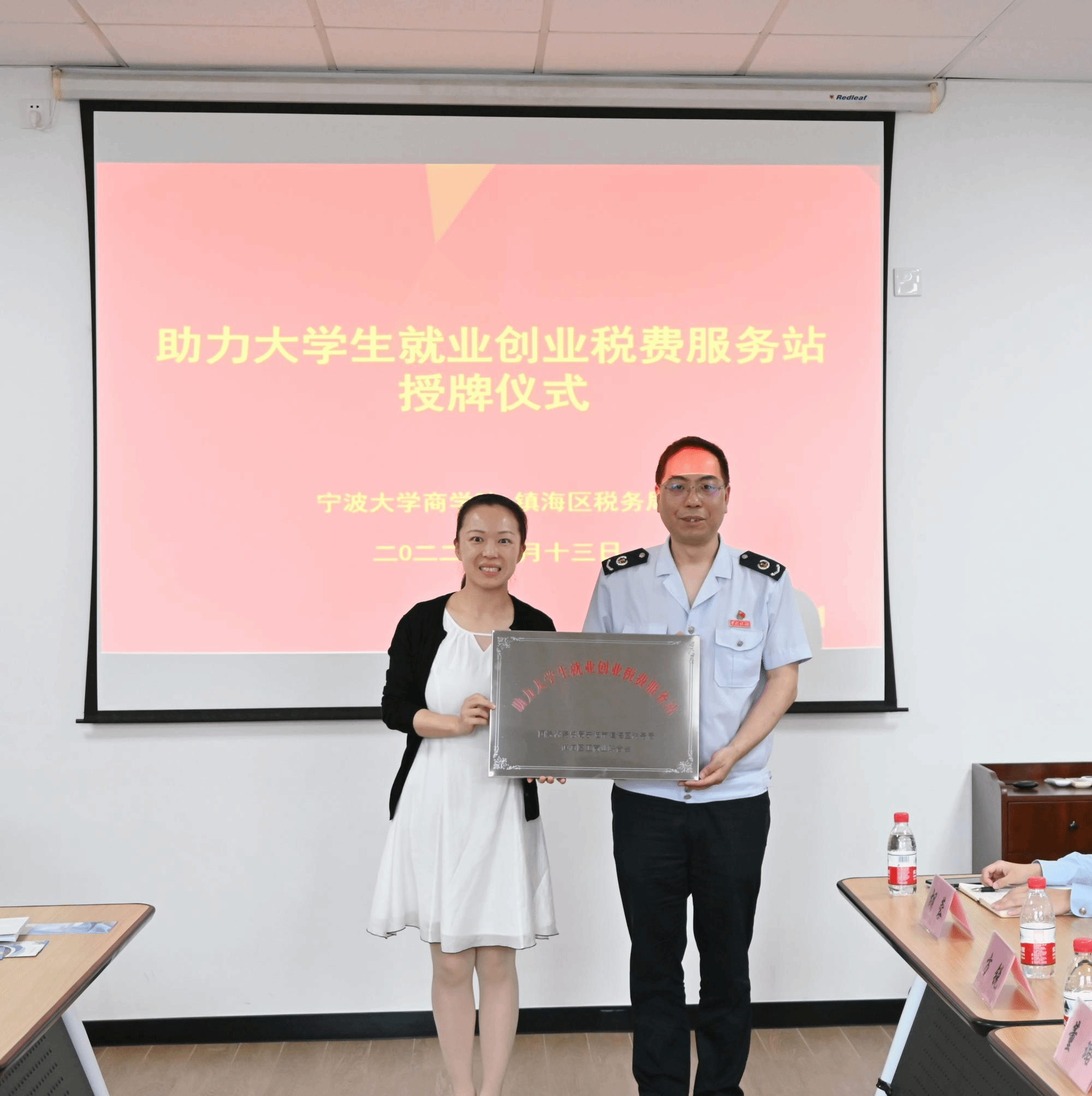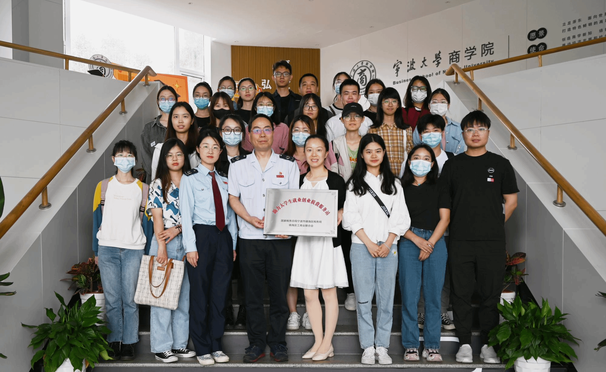 据悉,我院自2018年以来,就同镇海区税务局共同创建了“蓝精灵”大学生税收志愿服务项目,这是全市首个落地税务部门的助力实现“最多跑一次”改革的税校合作项目。今天“助力大学生就业创业税费服务站”授牌又让税校合作迎来了一个新的里程碑,为同学们择业就业和创新创业提供税费服务的同时,不断提升同学们纳税意识,筑牢拒腐防变的思想道德防线。