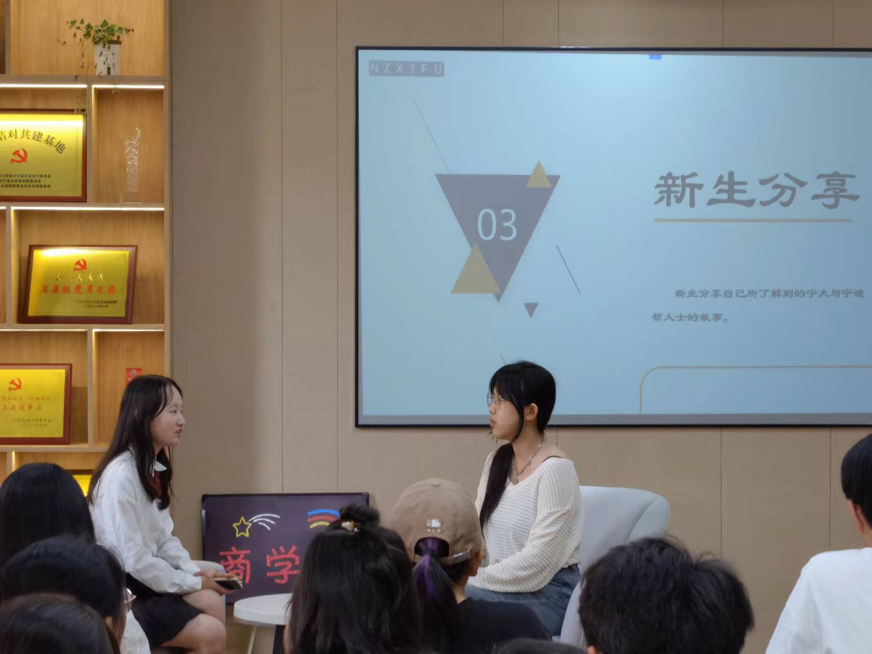 9月7日下午,我院文“话”商帮宣讲团携新生云游校园,帮助新生在入学阶段了解宁波大学与宁波帮的故事,活动邀请了学院全体2022级本科生和研究生新生参加。
