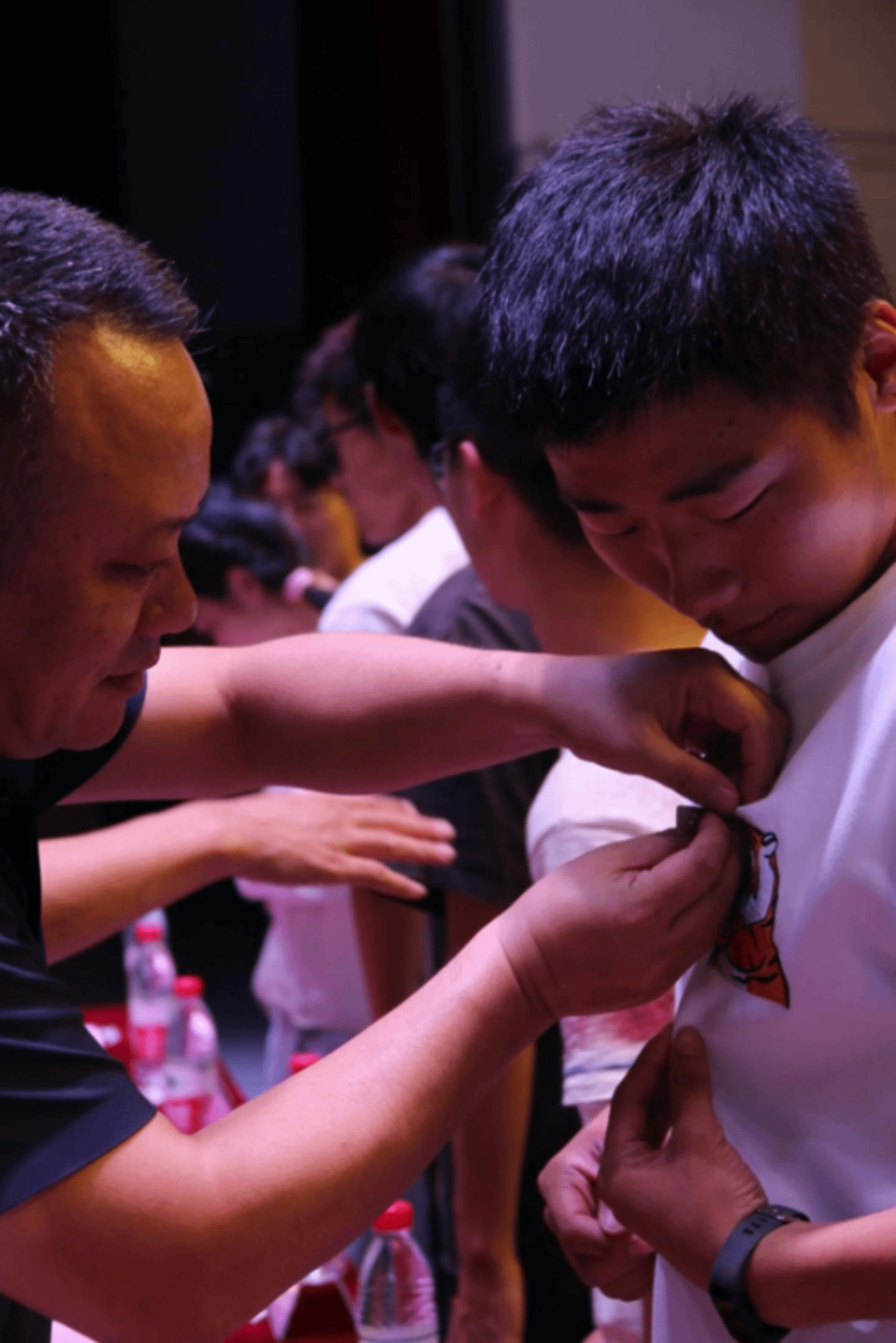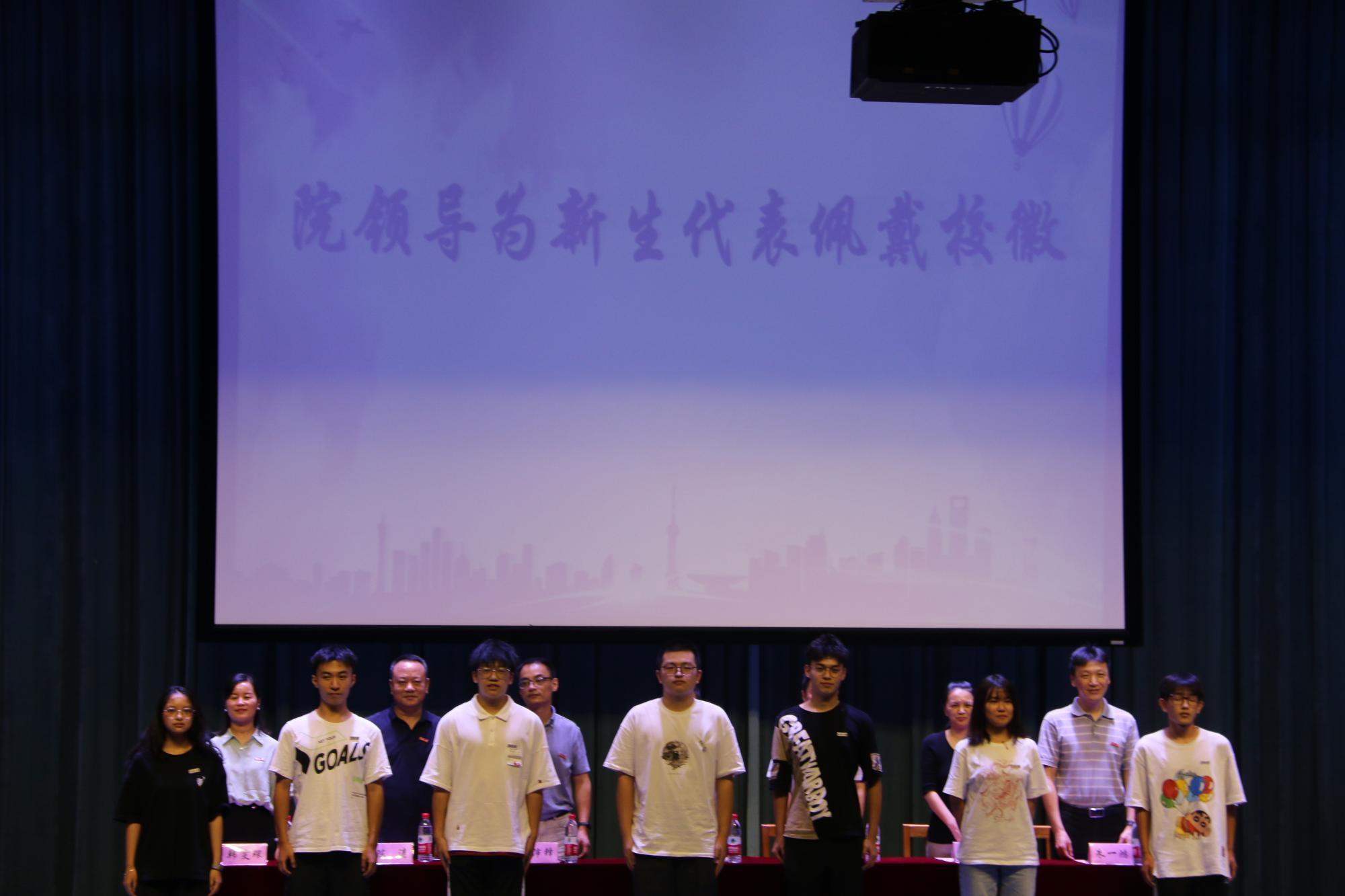 会议伊始,我院党委书记史宏协宣读了2021级本科生,2022级本科生和研究生新生的班主任及带班辅导员名单。随后,我院领导为新生代表佩戴校徽。