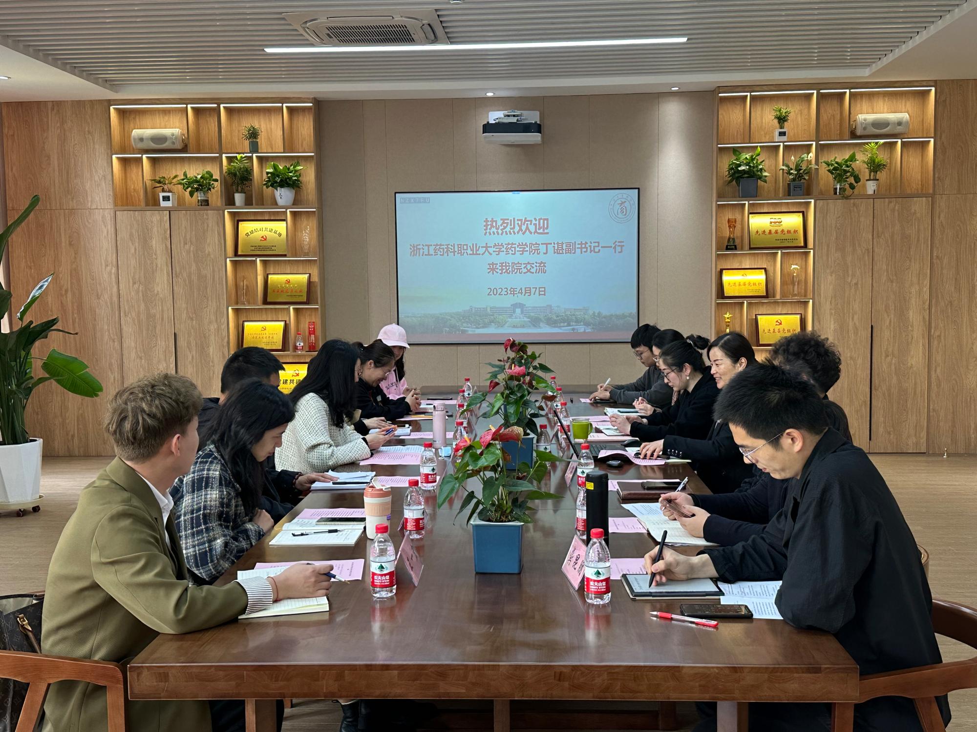 4月7日上午,浙江药科职业大学药学院党委副书记丁谌、学工秘书王婷一行7人来我院调研学生工作的经验做法。我院党委副书记韩雯琛、学工办主任陈彬、学工办辅导员周双双、孙健维、陶含怡、龚昆朋、钟冬冬出席接待。