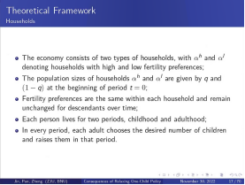 潘士远教授给大家介绍了自己的工作论文,阐述放开“一孩政策”,允许生育二孩的政策对我国生育率的影响。潘教授主要通过两个视角阐述二孩政策对生育率的影响:二孩政策会使得已有一个孩子的家庭生育第二个孩子的概率显著提高,以此提高生育率;同时,二孩政策会通过增加抚养成本,抑制未生育孩子家庭生育的欲望。即在集约边际上,放开“一孩政策”确实显著提高了生育意愿,但在广延边际上,放开“一孩政策”反而使得剩余第一胎的概率出现了下降。