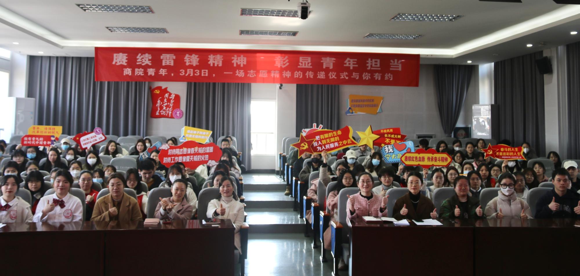 3月3日,在第60个学习雷锋日来临之际,我院举办“赓续雷锋精神,彰显青年担当”志愿精神传递仪式,也是我院学雷锋月的启动仪式。在仪式后,党支部、团支部将带领志愿者们深入开展一系列实践服务活动。本次仪式邀请了学院党委副书记韩雯琛、相关辅导员老师、学生党支部书记、文“话”商帮宣讲团成员、优秀志愿者团队及个人,学院党支部、团支部代表参加。