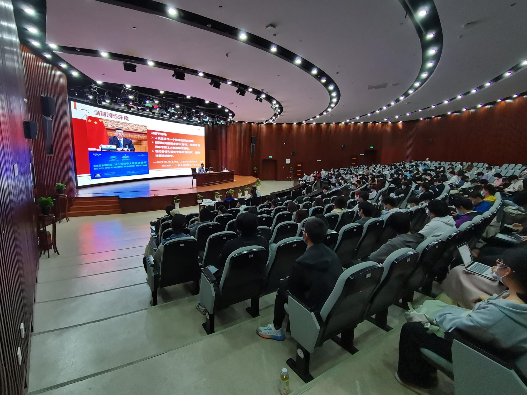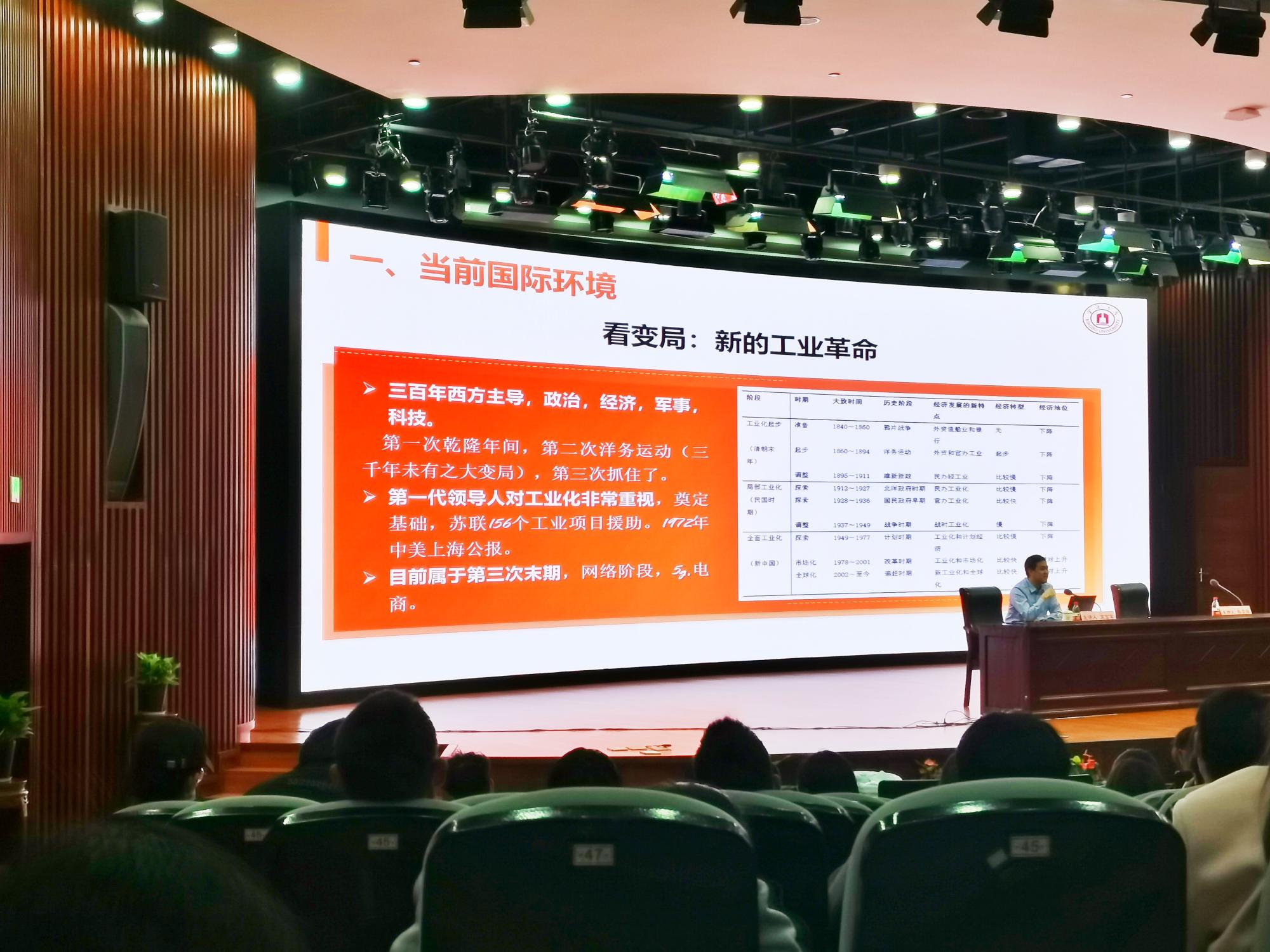 11月25日下午,副校级领导宋富军教授为我院师生主讲“形势与政策”课,主题为“当前国际环境和我国外交”,共260余名师生参加,我院党委副书记韩雯琛主持。