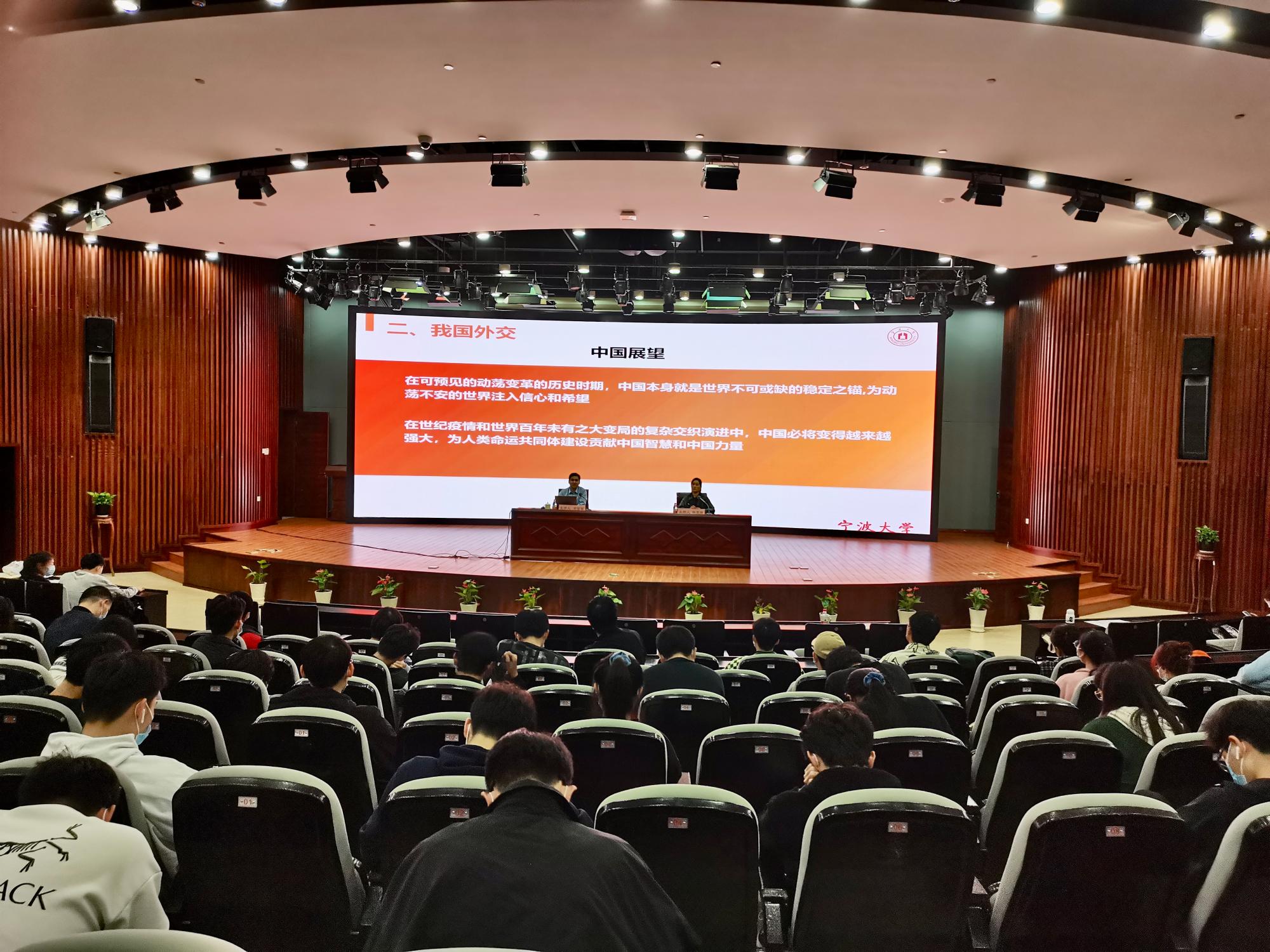 我国当前的国际形势如何?我国应当如何面对百年变局和世纪疫情交织叠加的世界?宋富军以“看变局”“看疫情”“看经济”这三个关键词出发,向师生介绍了百年未有之大变局与世纪疫情交织中的中美关系。在这一系列的博弈中,我们看到是的由弱变强,一步步站立起来的中国。党的二十大召开后,指出今后的五年是关键的五年,要好好利用当前的局势,抓住机会,推动发展。接着,他分析了我国当前的外交政策。从中国倡议、中国对策、中国行动三个方面进行了阐述回应时代呼唤,携手共克疫情,加强全球治理,朝着构建人类命运共同体方向不断迈进。用新发展战略、新发展方式、新开放方式促进我国的开放,“中国开放的大门不会关闭,只会越开越大”展现出了中国态度。今年我国成功举办了冬奥会,开展元首外交和主场外交,彰显自信开放的大国风范和推动世界和平发展的大国担当,充分展现了中国形象,中国始终是世界和平的建设者、全球发展的贡献者、国际秩序的维护者、公共产品的提供者、热点问题的斡旋者。