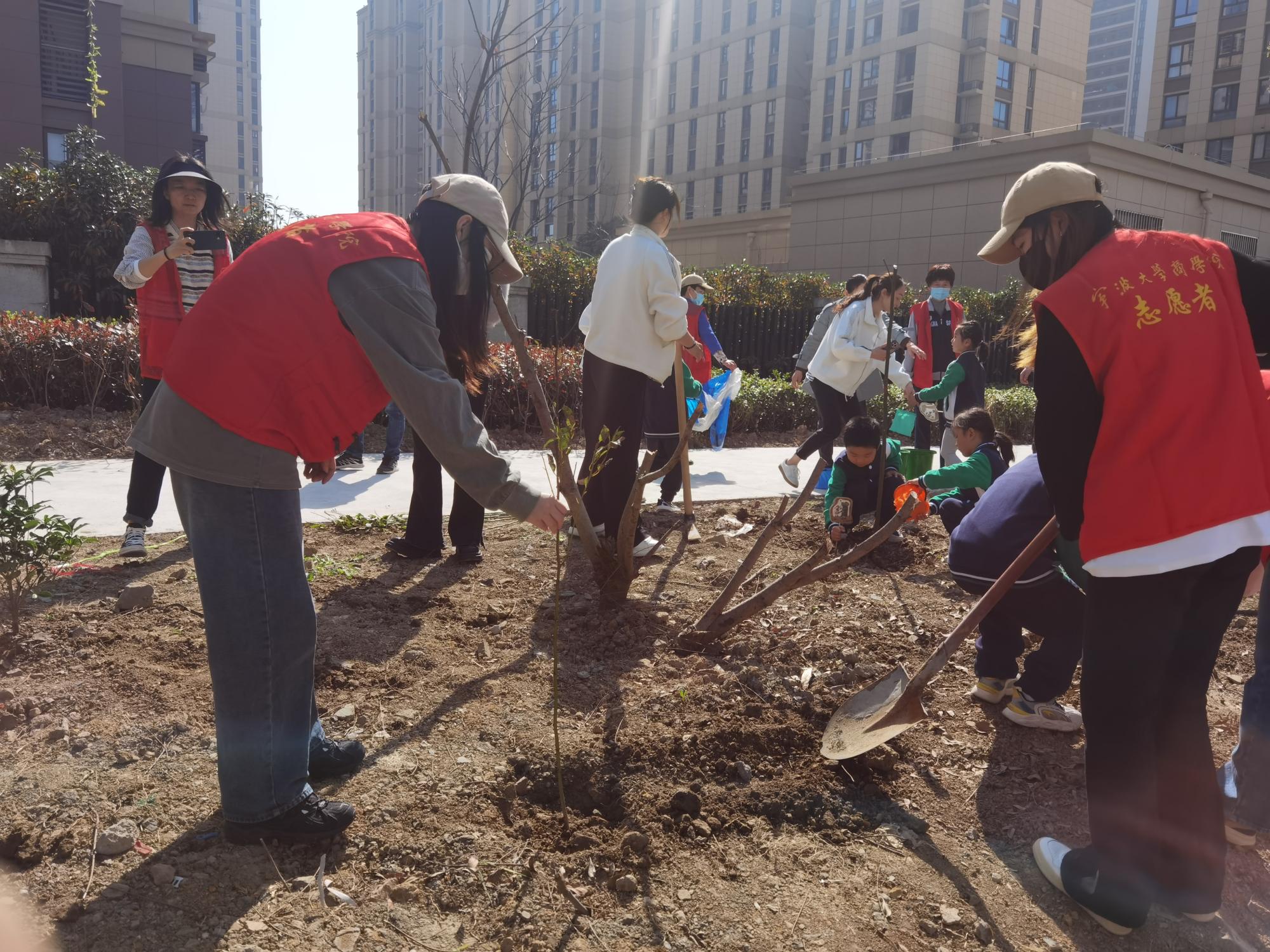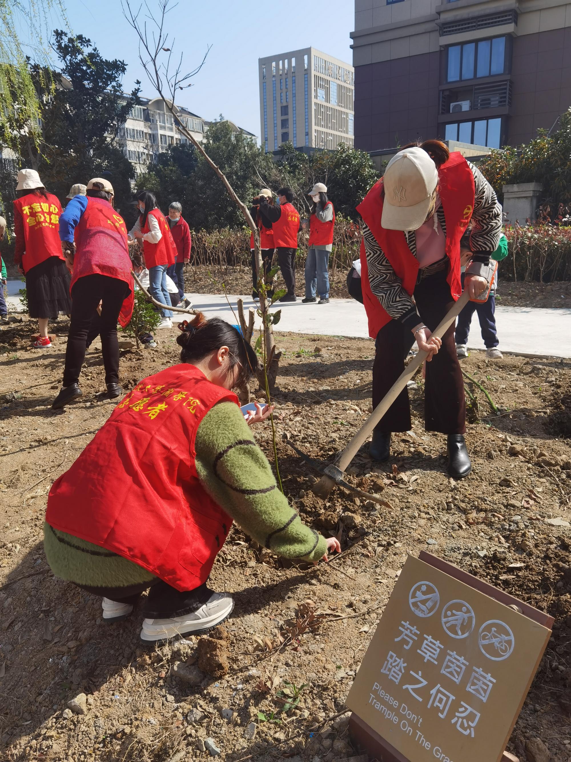 随后,我院会计专硕研究生党支部成员和社区党员、悦士庭幼儿园老师和小朋友分组植树,活动现场,大家热情高涨,挥锹铲土、挖坑栽苗、扶苗填土、培土围堰。大家干劲十足,认真细致地栽种好每一株树苗。“学习防诈骗知识,守护自己的财产安全,不让诈骗分子有机可乘,同样也是守住了自己家里的‘金山银山’。”大家将防诈标语宣传牌挂在了小树苗上,希望在祖国土地上种下绿色的同时,也把防诈、反诈知识“植”入人们的心中。活动的最后,大家一起放飞竹蜻蜓,寄托自己的美好愿望。