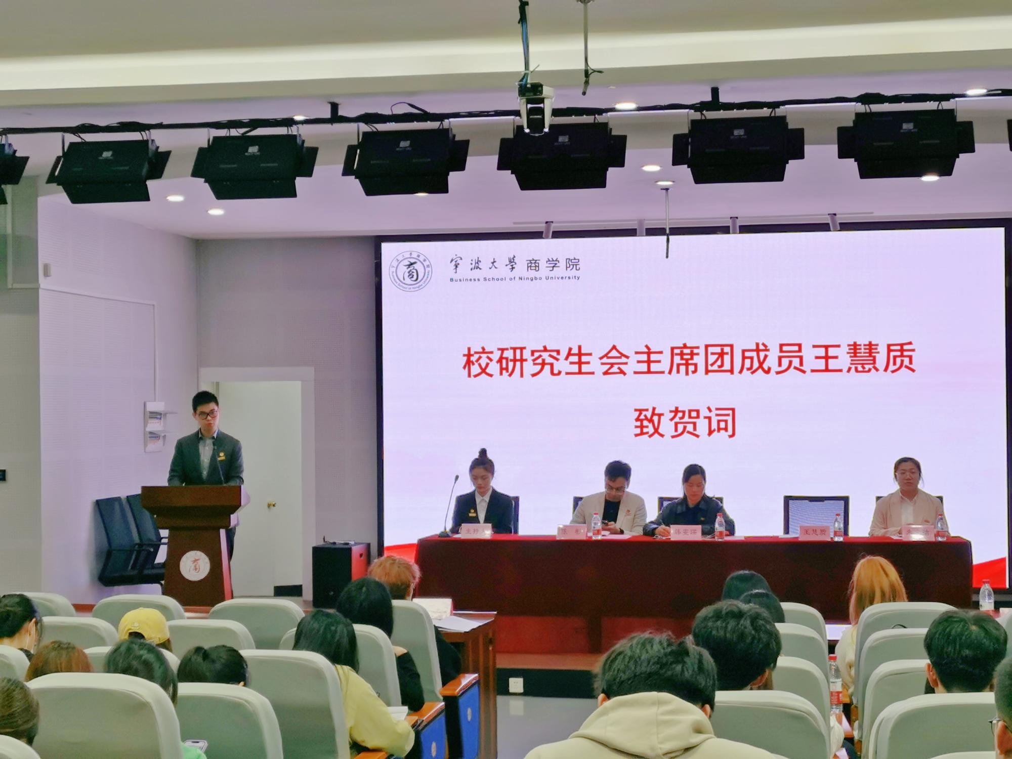 会议伊始,在介绍了出席本次会议的各位领导和来宾后,电竞博彩 学工办主任陈彬致开幕词,他肯定了上一届研究生会在学院发展过程中所发挥的积极作用,并表达了对新一届研究生会的殷切期盼。接续,校研会代表王慧质致贺词,他代表校研会对电竞博彩 研代会的召开表示热烈祝贺,并表达了对我院老师和学子的真诚祝福。随后,学院党委副书记韩雯琛致辞,她首先回顾了上一届研究生会举办的各项活动,肯定了上一届研究生会的工作。随后,她对我院研究生学子提出了几点希望,期盼广大学子能够积极向上,敢于创新,发展创新思维,成为综合性人才,积极学习领悟党的二十大报告中的中国式现代化。最后,韩老师对新一届研究生会的工作提出展望和要求,希望各位研会干部能增强责任感,服务同学,起到老师和同学之间的纽带桥梁作用,为学院的发展做出贡献。