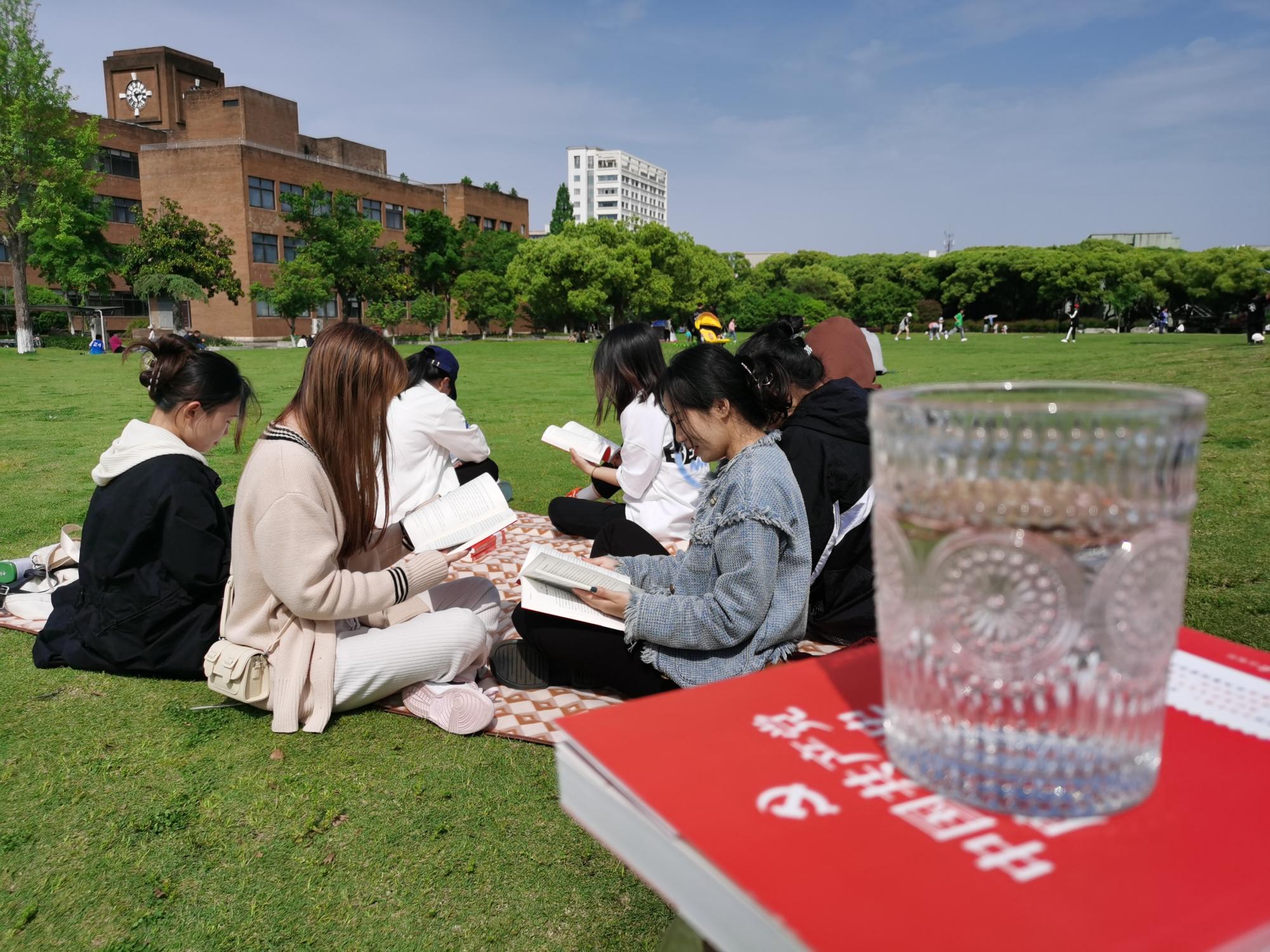 在领读人的带领之下,同学们在春意盎然的大草坪上开展阅读,在读书的同时,同学们还一同品味茶香,一边喝茶一边看书。茶与廉,紧密相连,以茶思源,以茶养廉。结束第一章的阅读后,同学们纷纷开始分享读书的体悟,以茶会友。